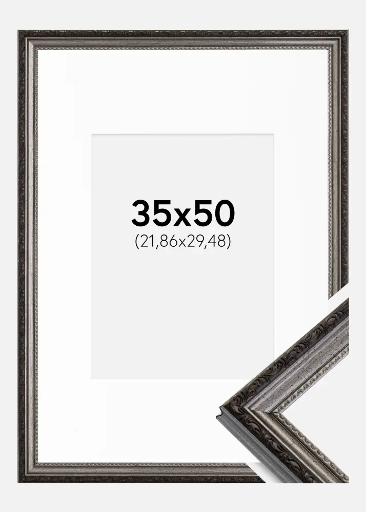 Frame Abisko Silver 35x50 cm - Picture Mount White 9x12 inches