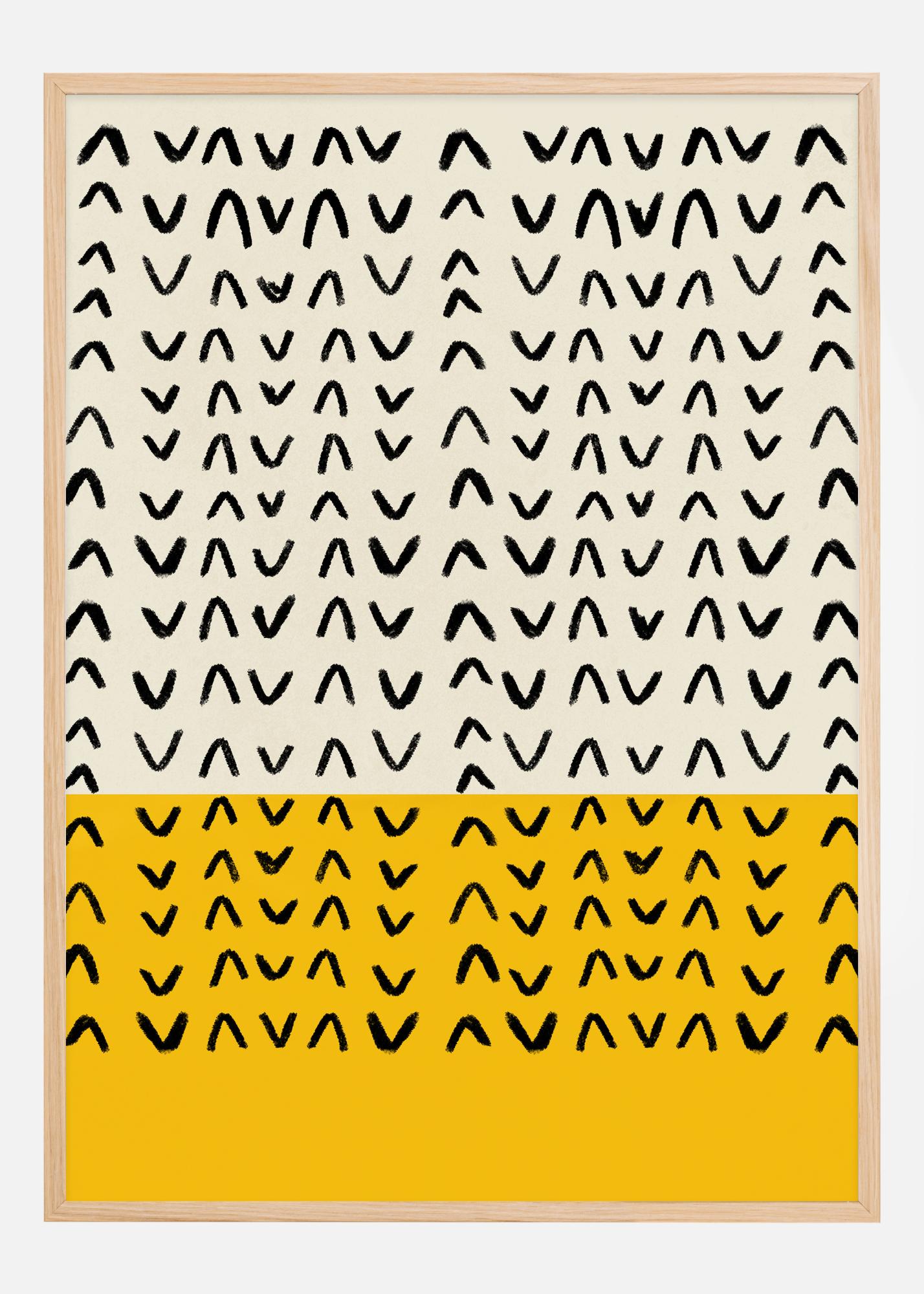 Experience the modern and minimalist aesthetic with this artful poster. The design features a rhythmic composition of abstract, black sweeping forms against a soft, neutral background. The motif is sharply divided by a powerful yellow section in the lower third, adding a bold contrast to the predominantly calm and harmonious upper part. This poster is perfect for the trend-conscious individual looking to introduce a contemporary and stylish feel to their home or office.