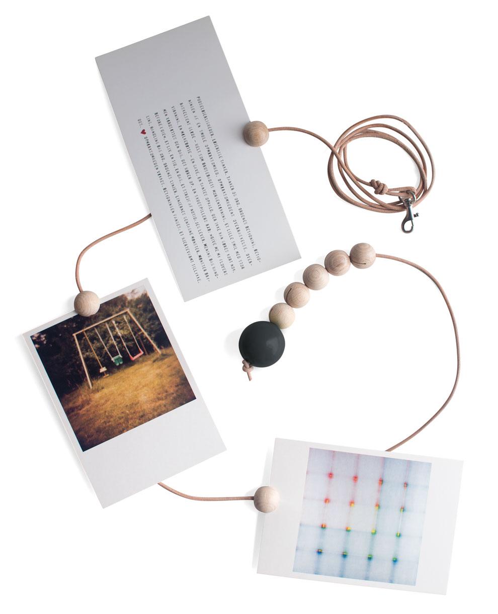 You mount your pictures easily and smoothly in the wooden spheres, which can be slipped on and off the cord, making it unbelievably easy to change your pictures when you feel like it!