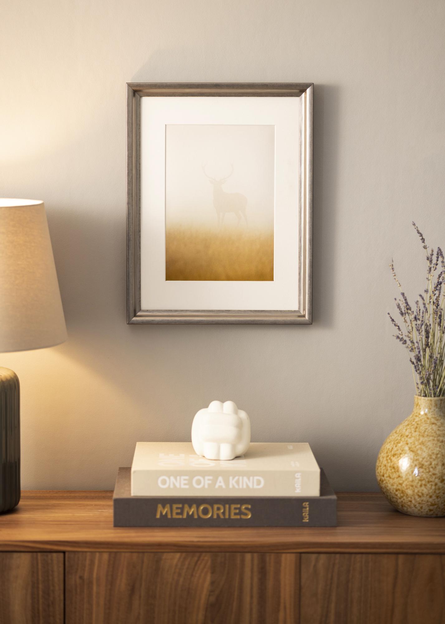 Photo frame in a graphite grey shade of silver which gives life to your portraits. With its pleasant colour tone, this is a made to measure picture frame that works anywhere.