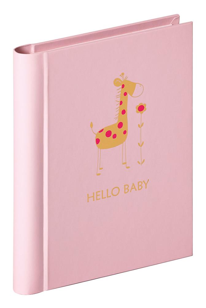 "Hello baby", says this sweet mini photo album that's dedicated to the youngest in the family. The album is pink with an image of a cute baby giraffe over the text. Inside, you'll find 30 plastic sleeves decorated with heart shapes, giraffes and flowers. On the first page there are 6 printed rows where you can write a nice message.