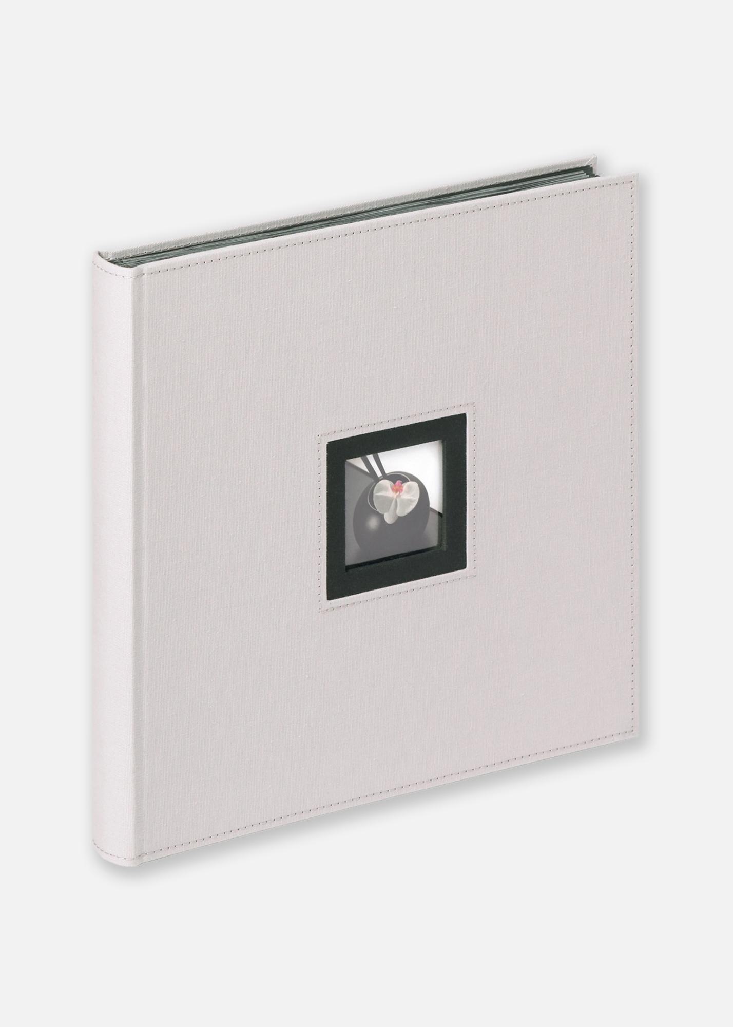 Choose yourself the style in which you display your pictures with this photo album. The album is light grey with a square opening framed in black on the front, where you can put a picture or text. A light grey seam runs along the album's edges as a decorative detail. Inside you'll find 50 black pages that you can stick your photos and other treasured memories on.