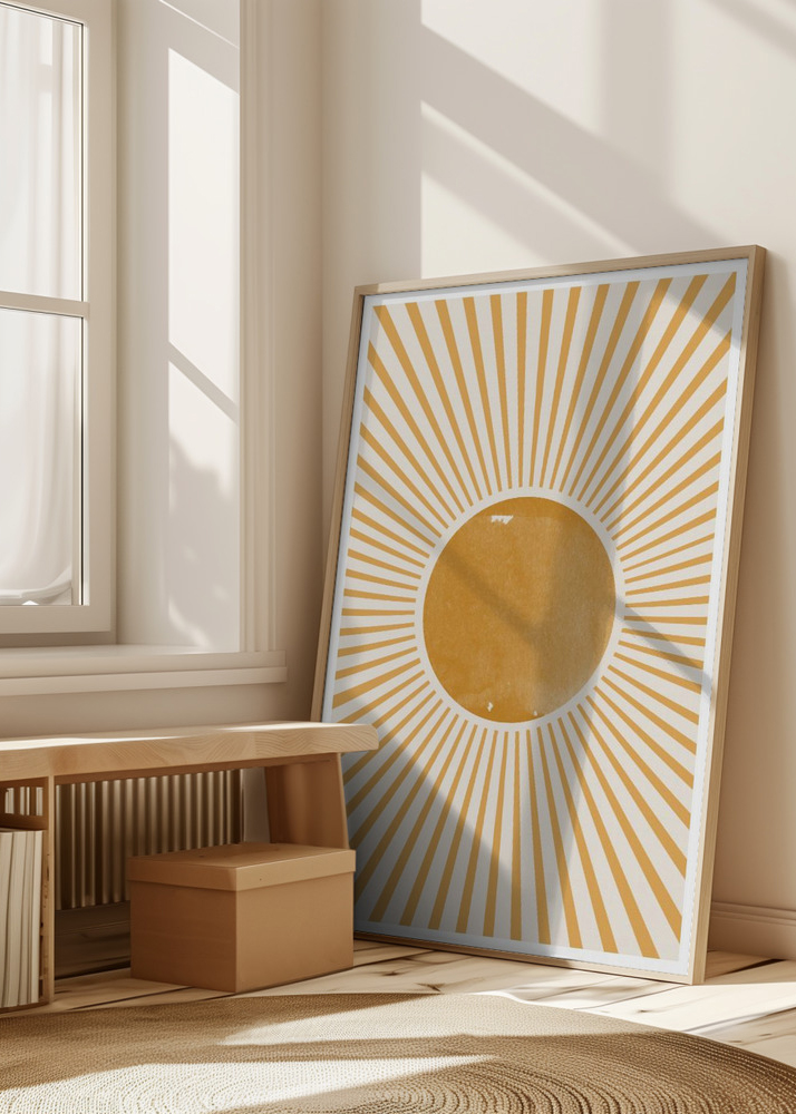 This print can brighten up any room and add a touch of boho-chic to your decor. It is perfect for those who want to incorporate a piece of nature's beauty and a sense of light into their home. Its universal symbol of the sun makes it a welcome addition in many different interior environments, from a living room to a yoga space or a children's room.
