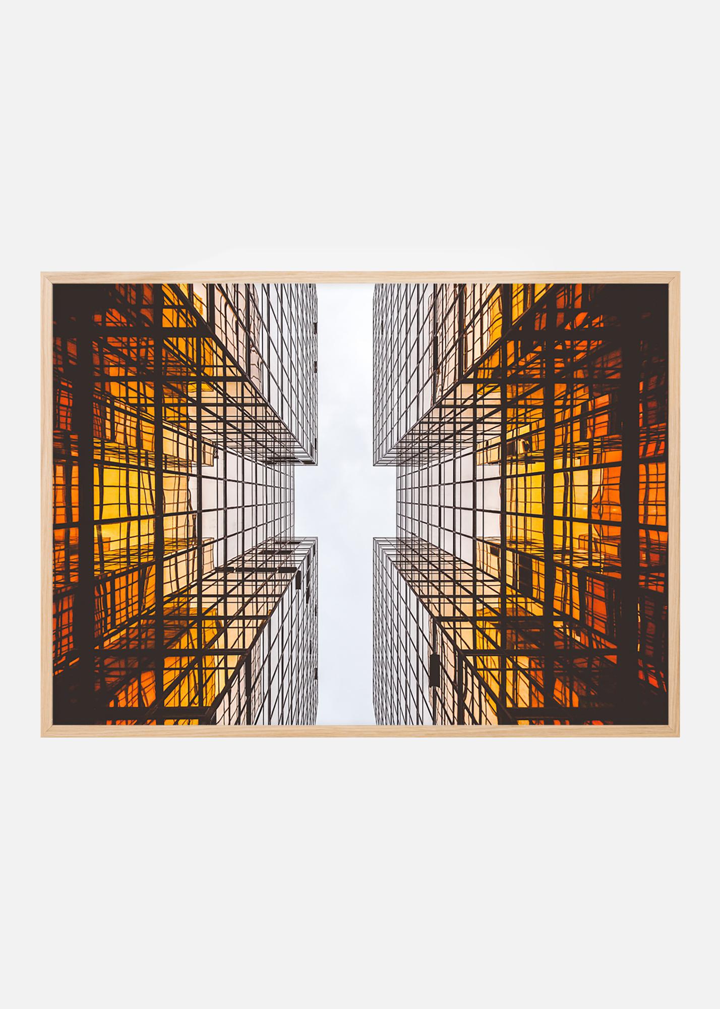 Poster with futuristic architecture that, with its graphic lines, creates an exciting pattern. The colours fade from deep orange at the base of the building towards the white sky. The poster works well with a thinner frame in both minimalist decor and other styles with graphic elements. Feel free to combine with other pictures of exciting architecture or urban environments.