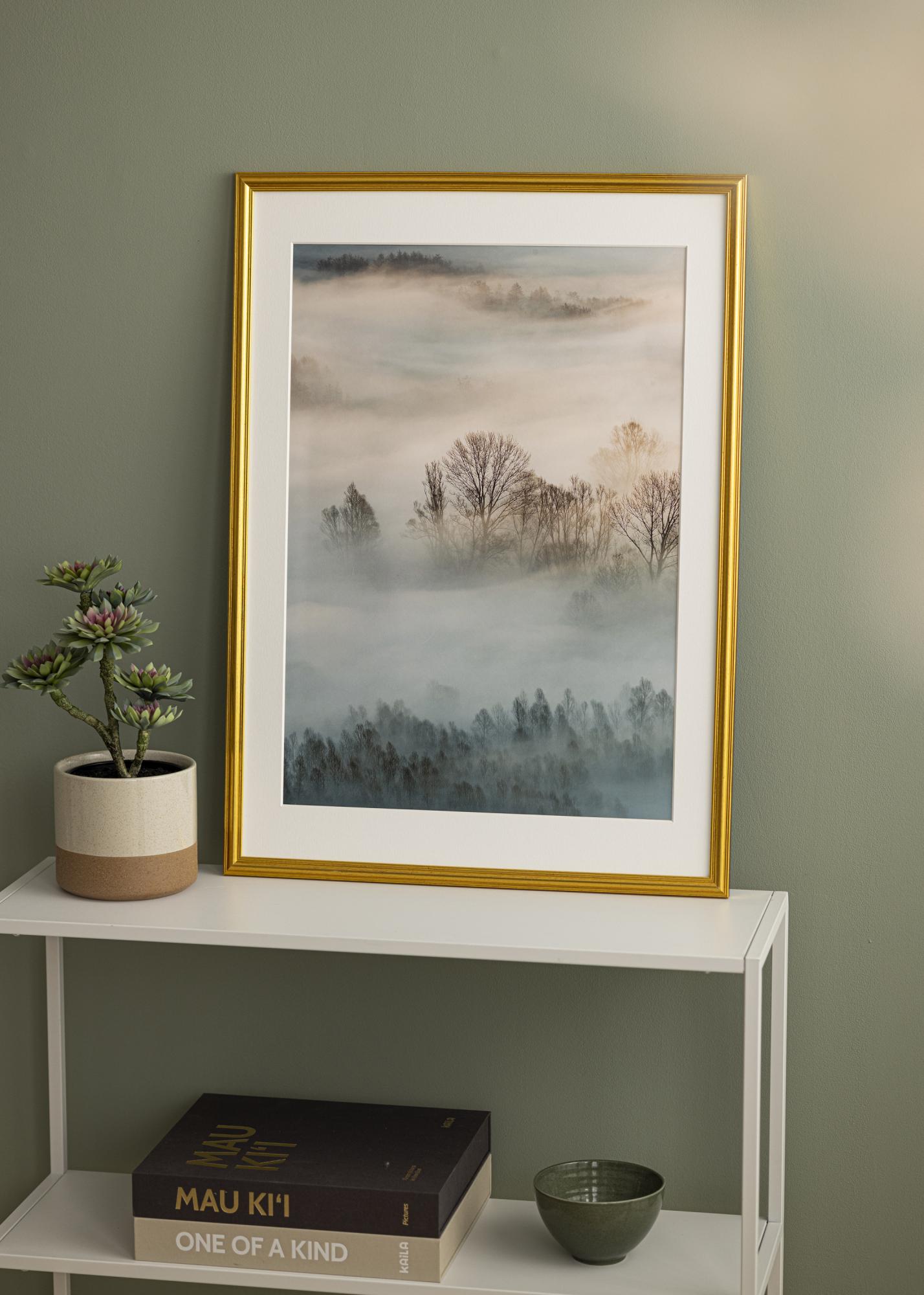 Attractive gold-coloured picture frame with speckled red elements in a classic, timeless design. With its golden colour, this is a picture frame that suits almost all images and settings.
