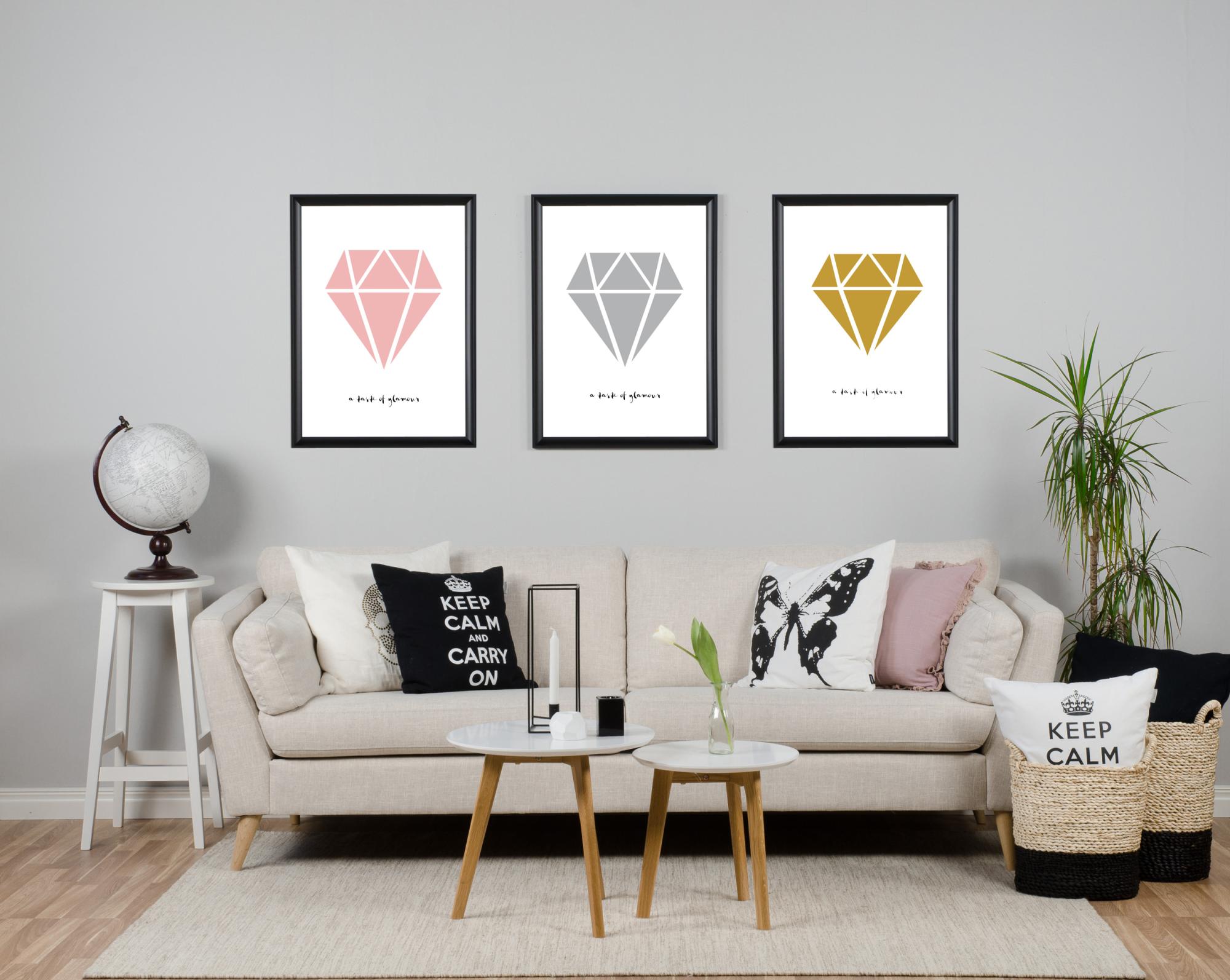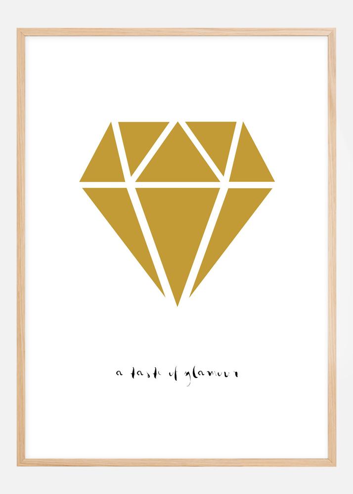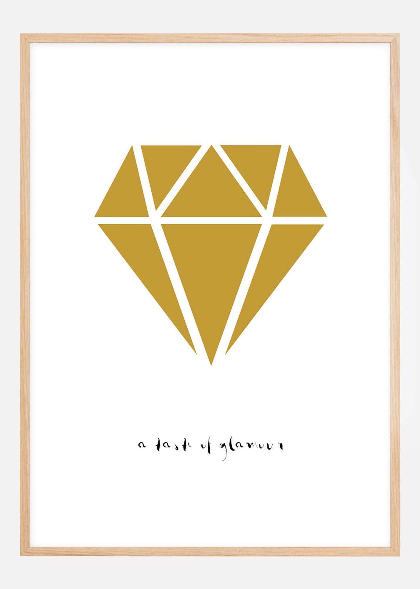 Diamonds are a girl's best friend, though here in a more affordable form of a graphic print. Give your home a sense of luxury and flair with a stylish poster featuring a motif of a diamond in gold on a white background, with the text "a taste of glamour". Everyone needs a bit of glamour now and then, and this is an easy way to add a bit more of it to your life.