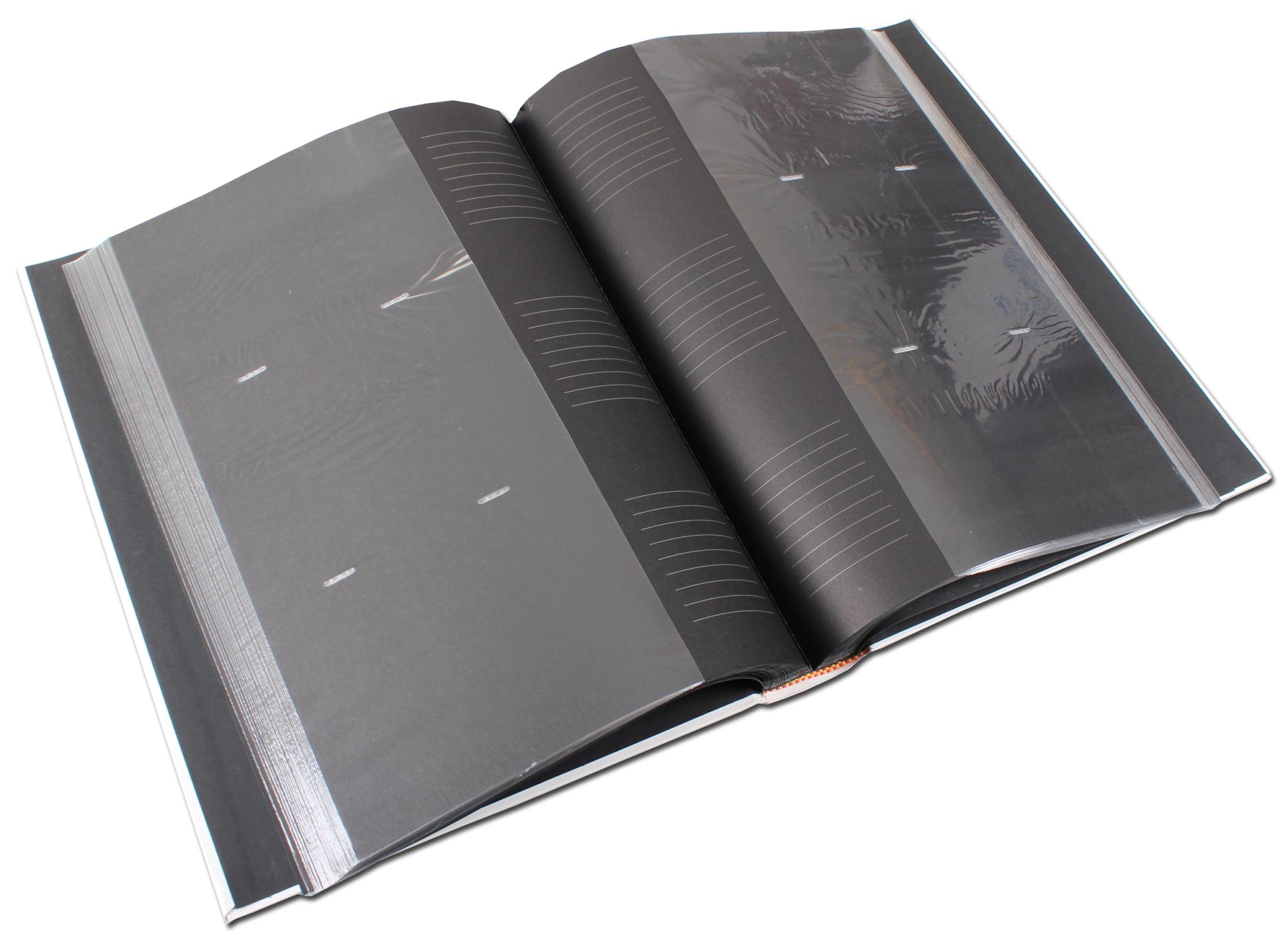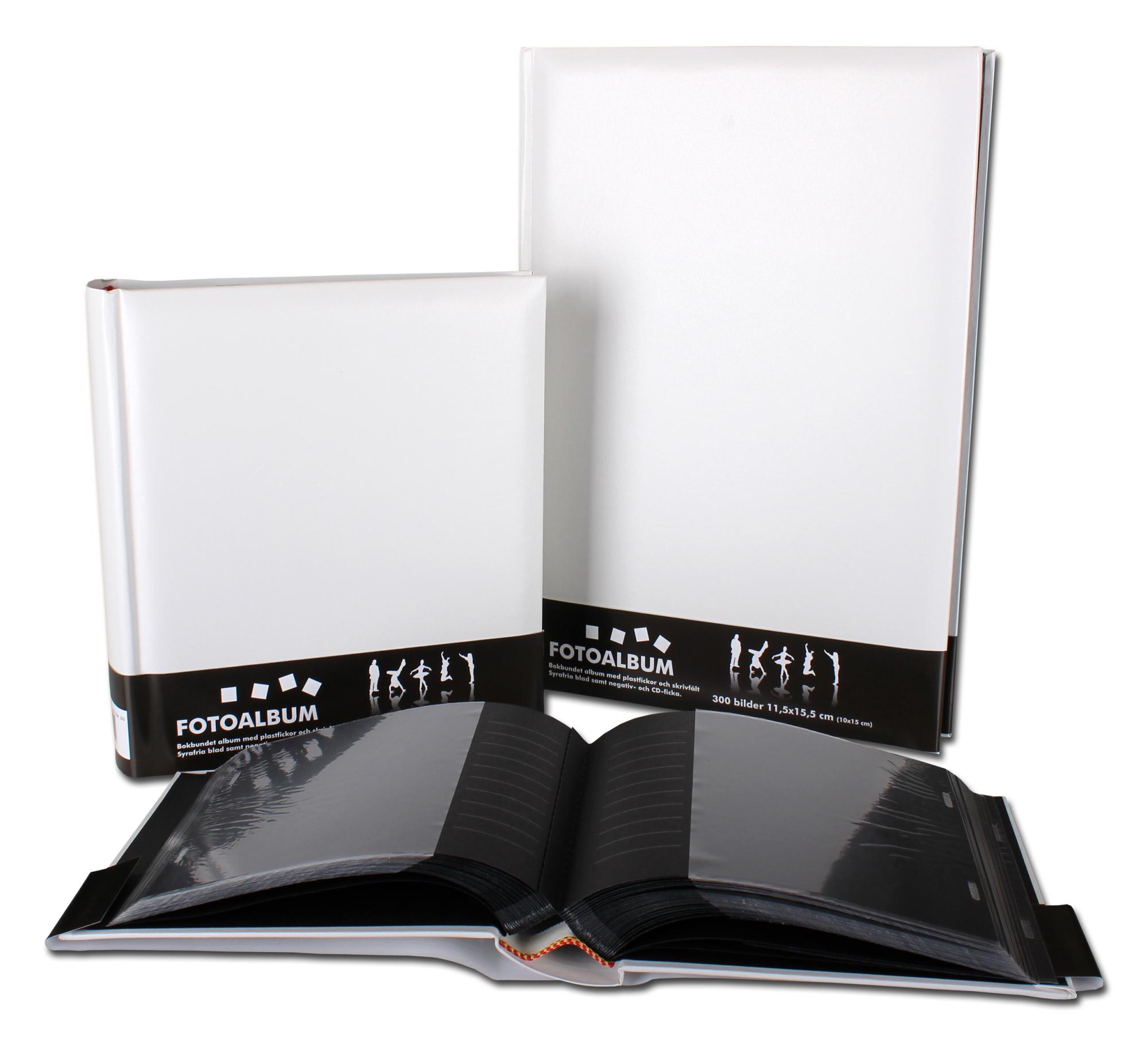 On grey days you can always look at your old, treasured memories to cheer yourself up. Here we have a charming and stylistically simple photo album which has space for as many as 300 of your cherished photos! The album is completely white and made from imitation leather. Inside it are black, acid-free pages with transparent plastic pockets. Under each pocket is a space where you can write a fun text for each picture. If you do this, it's best to use a pen with a strong metallic colour, so that the text is visible against the black background.
