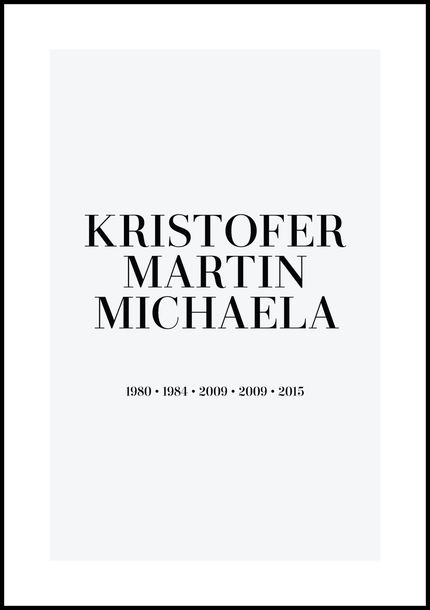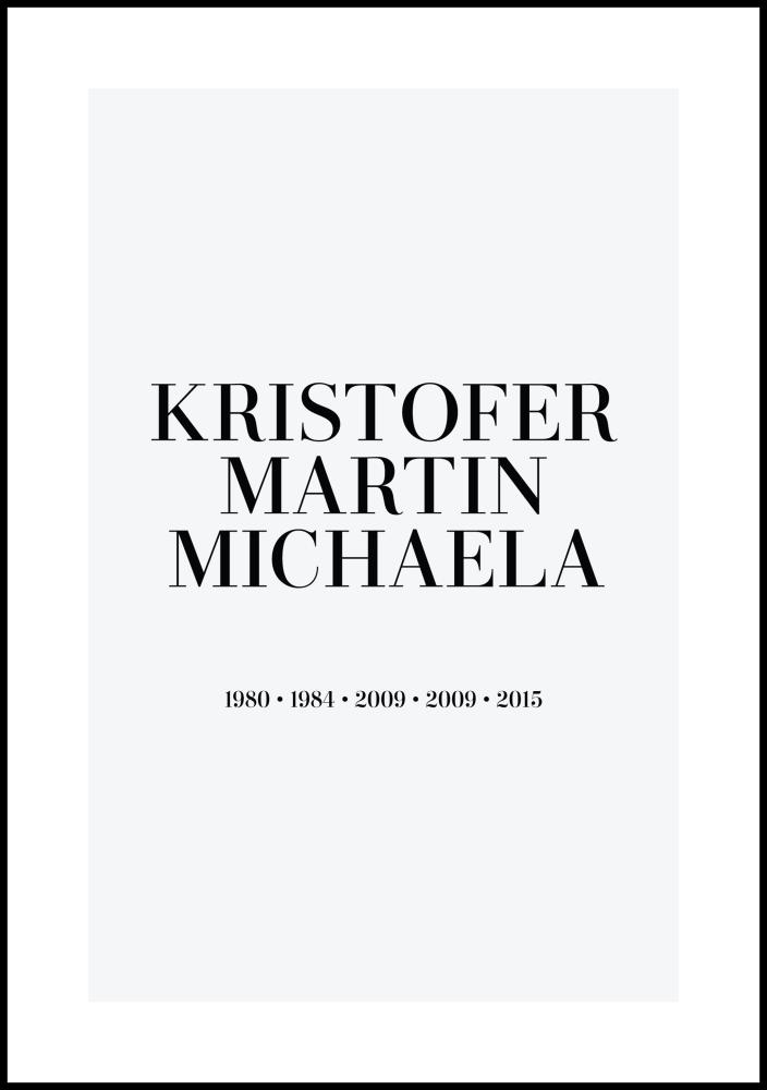 Family picture - 3 Names & Birth years - Grey (21x29,7 cm (A4))