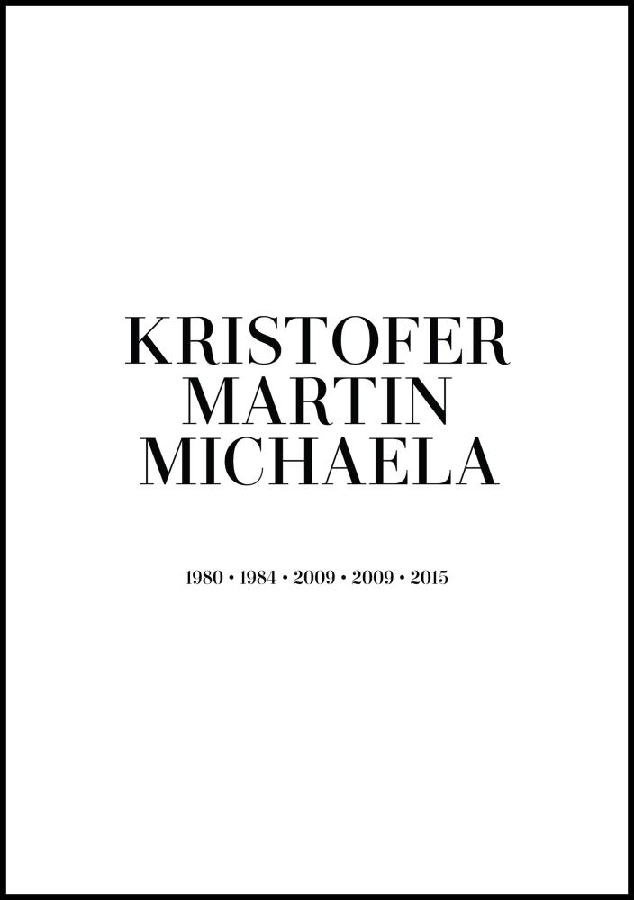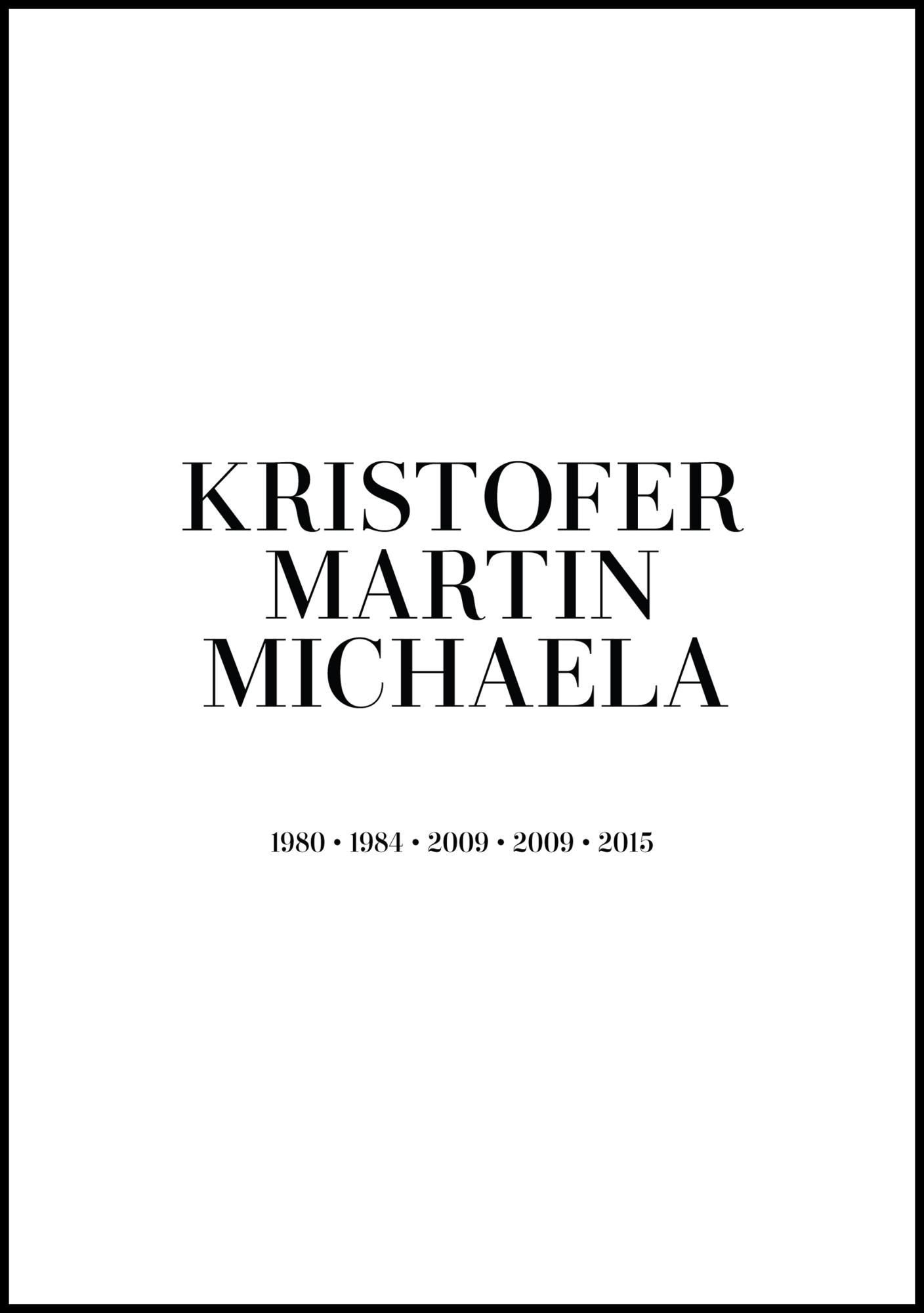 Family picture - 3 Names & Birth years - White (21x29,7 cm (A4))