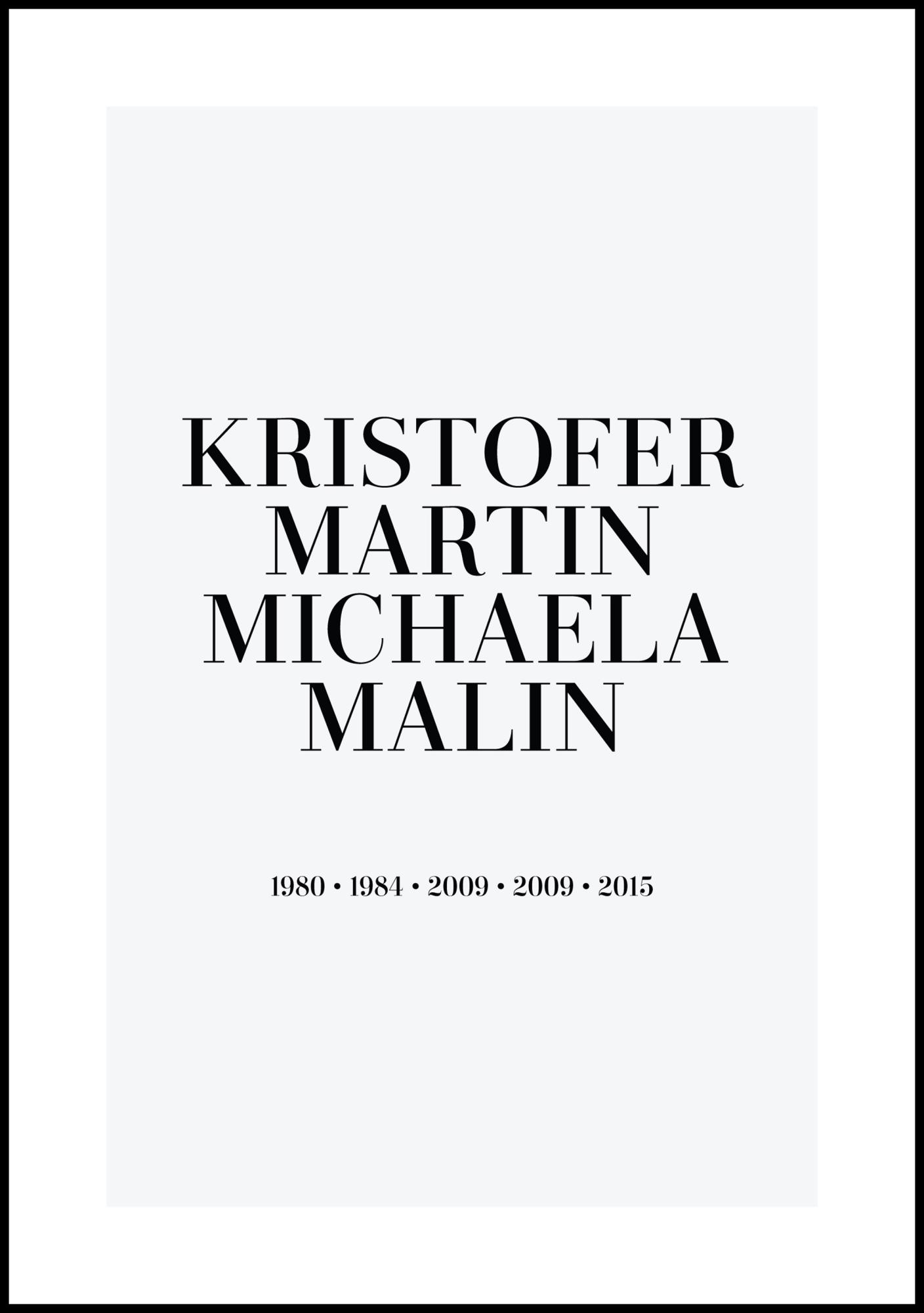Family picture - 4 Names & Birth years - Grey (21x29,7 cm (A4))