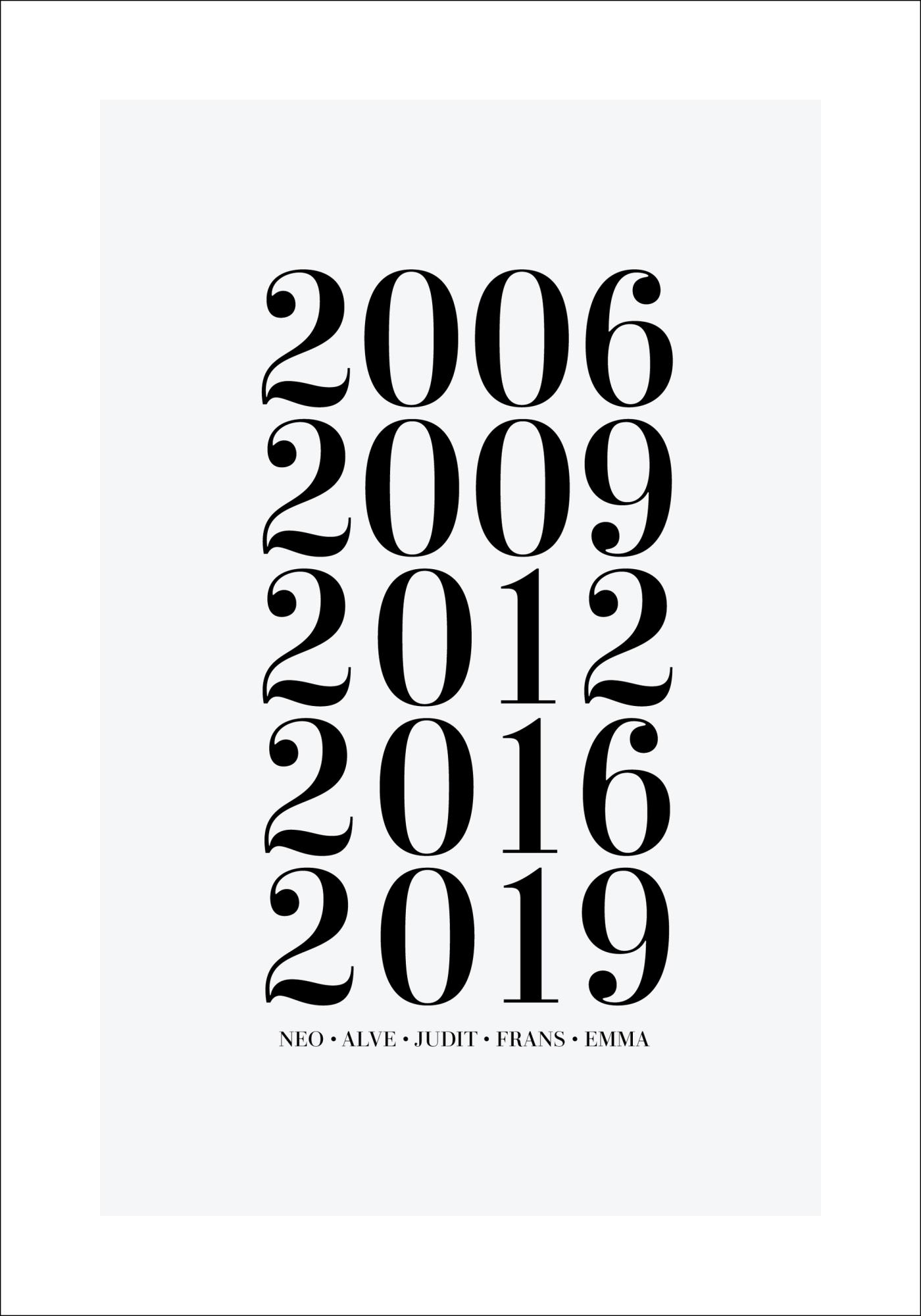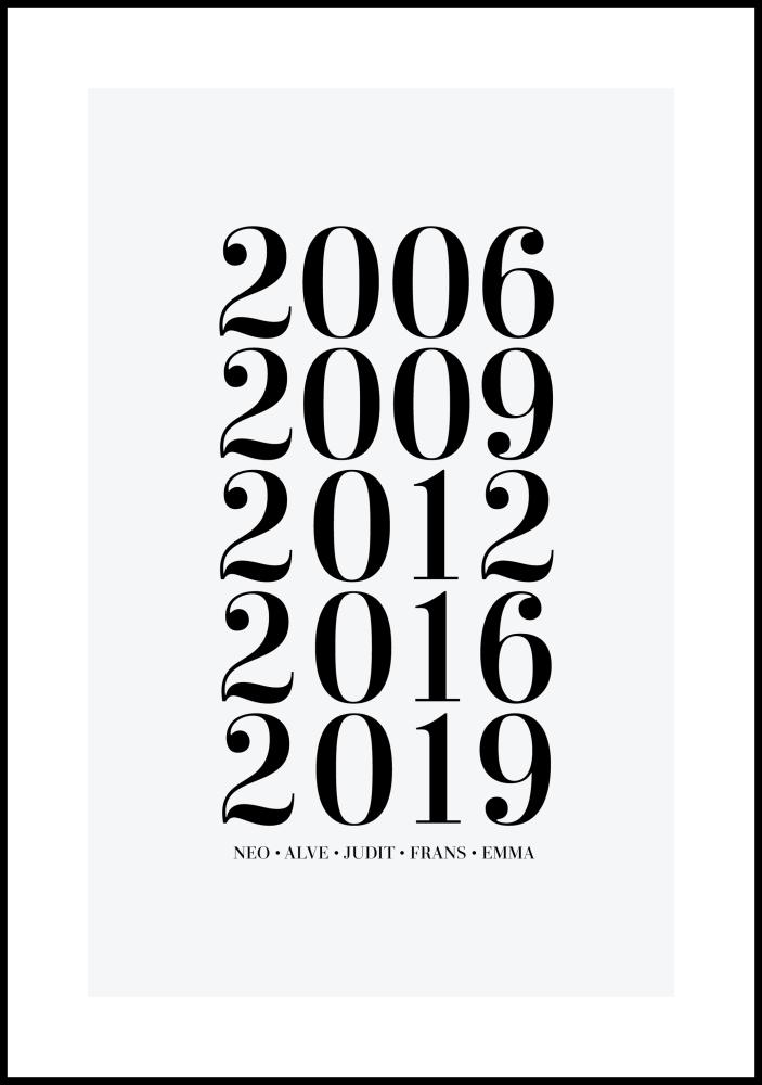 Family picture - 5 Birth years & Names - Grey (21x29,7 cm (A4))