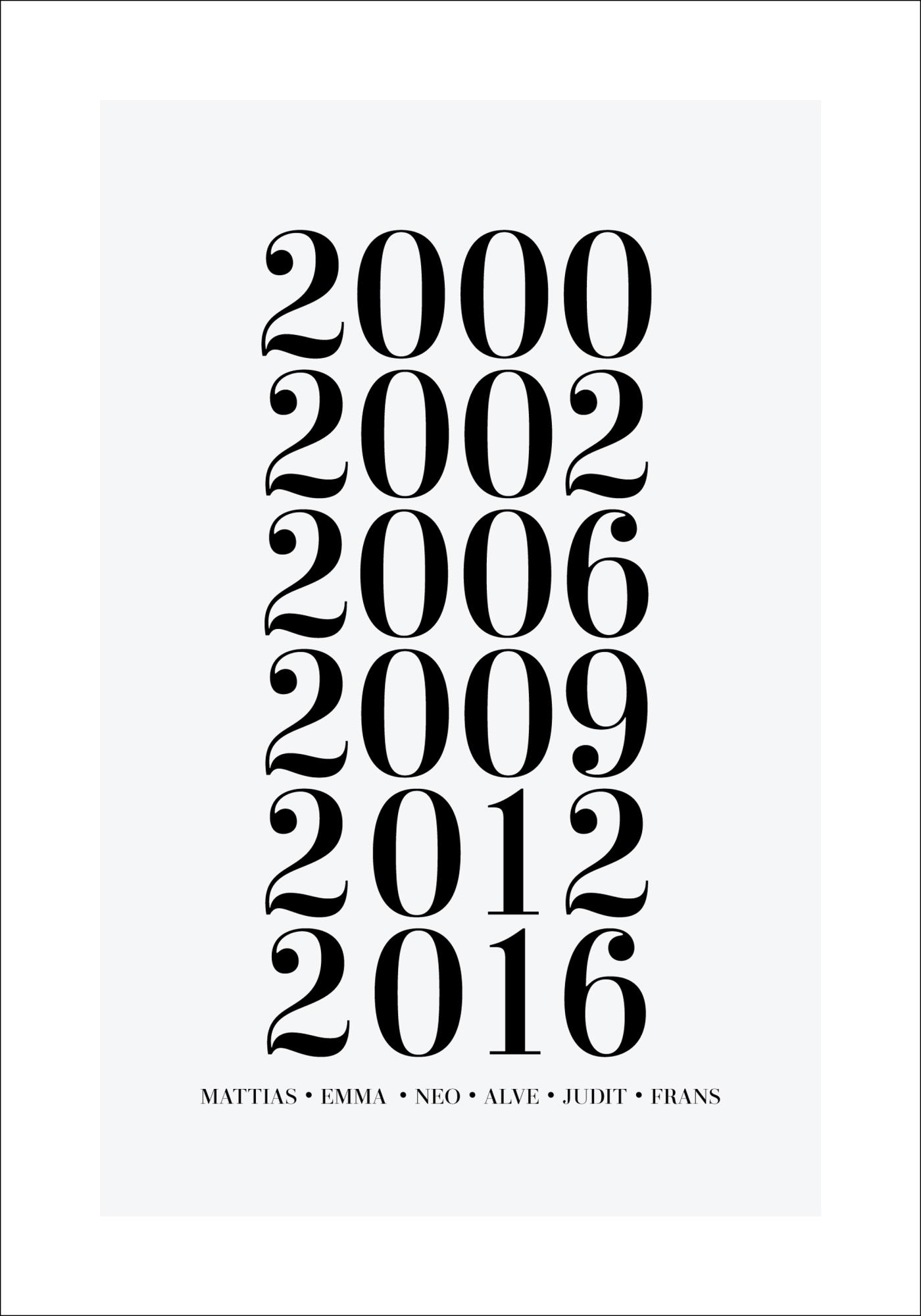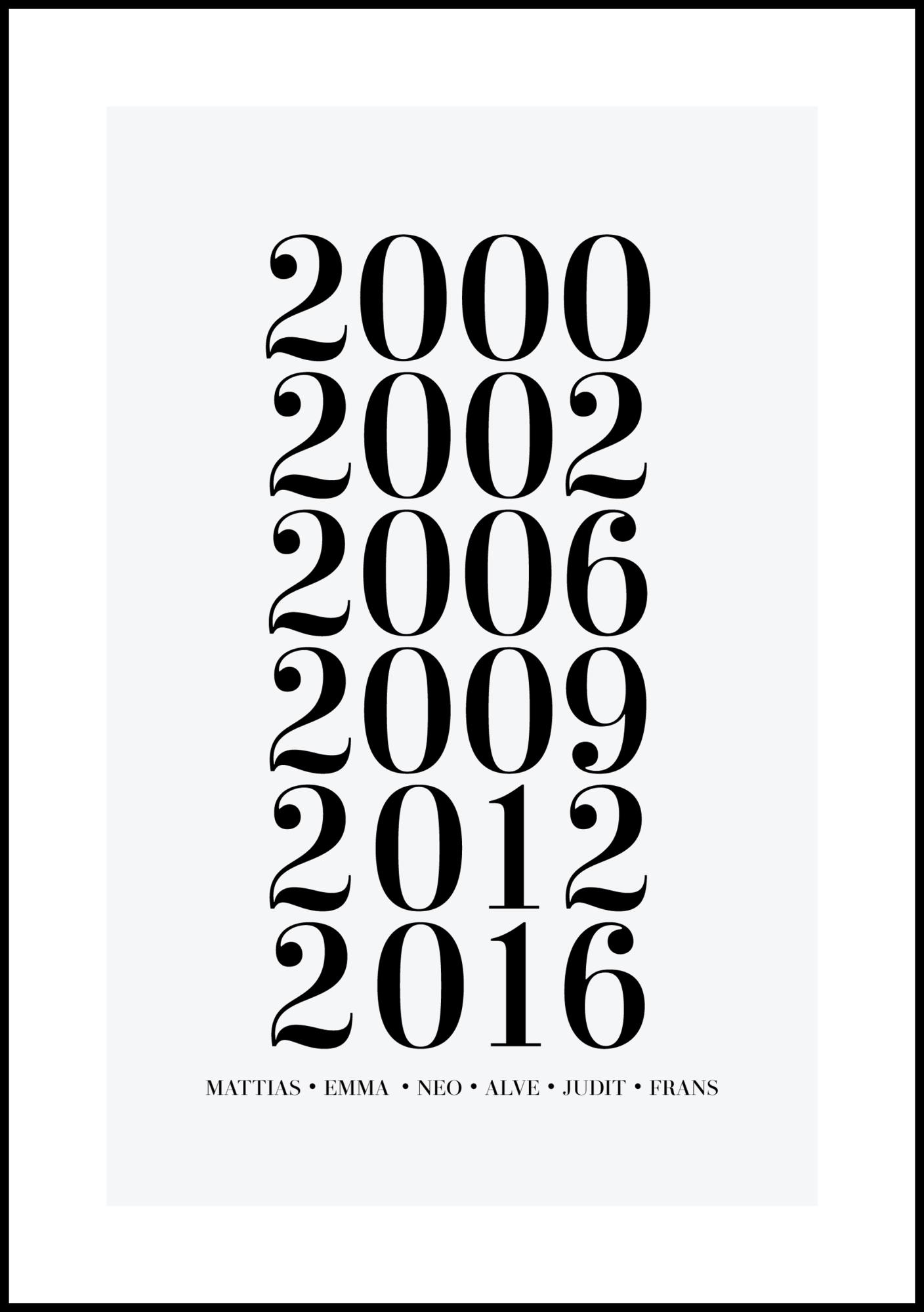 Family picture - 6 Birth years & Names - Grey (21x29,7 cm (A4))