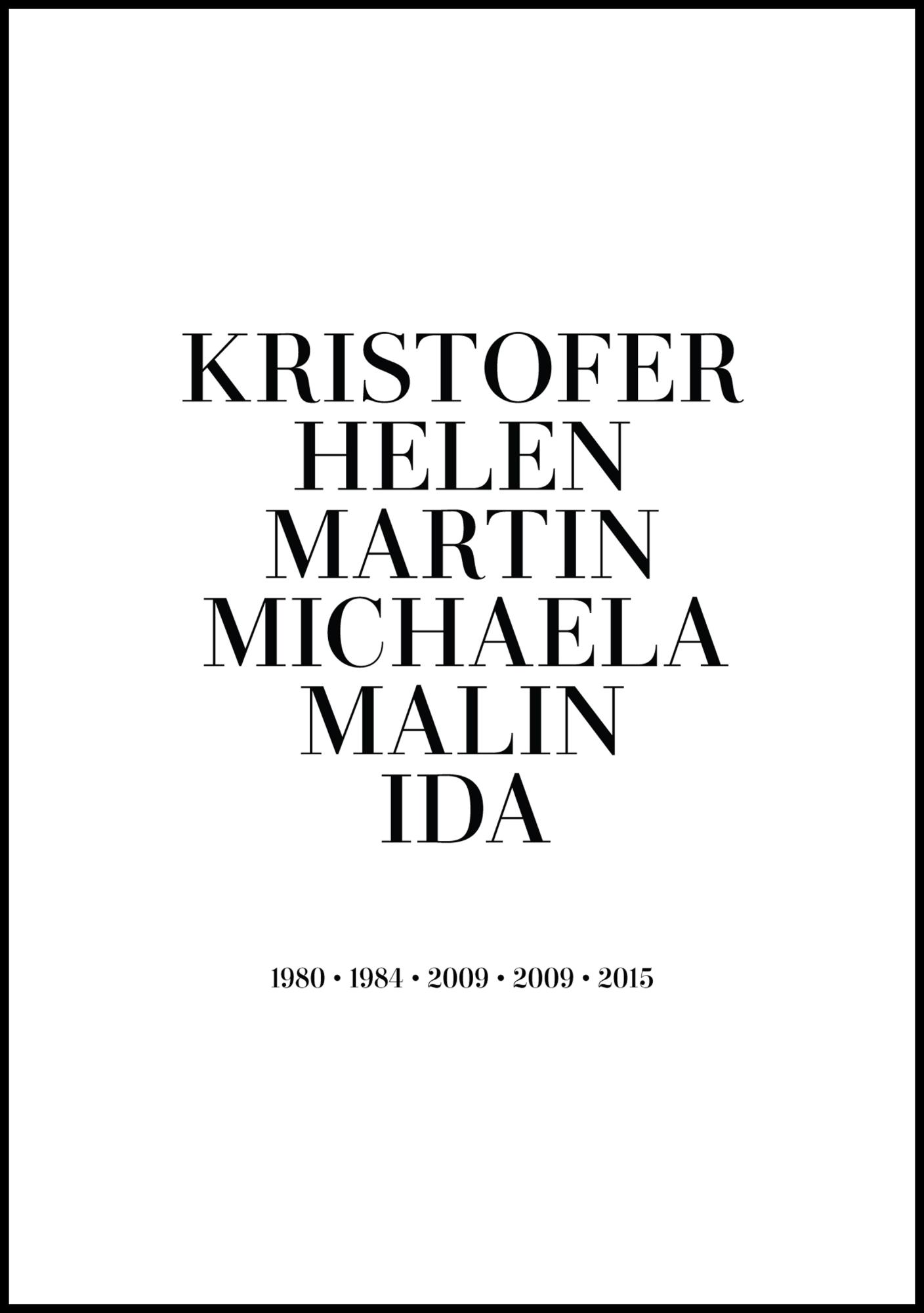 Family picture - 6 Names & Birth years - White (21x29,7 cm (A4))