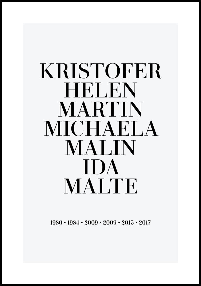 Family picture - 7 Names & Birth years - Grey (21x29,7 cm (A4))