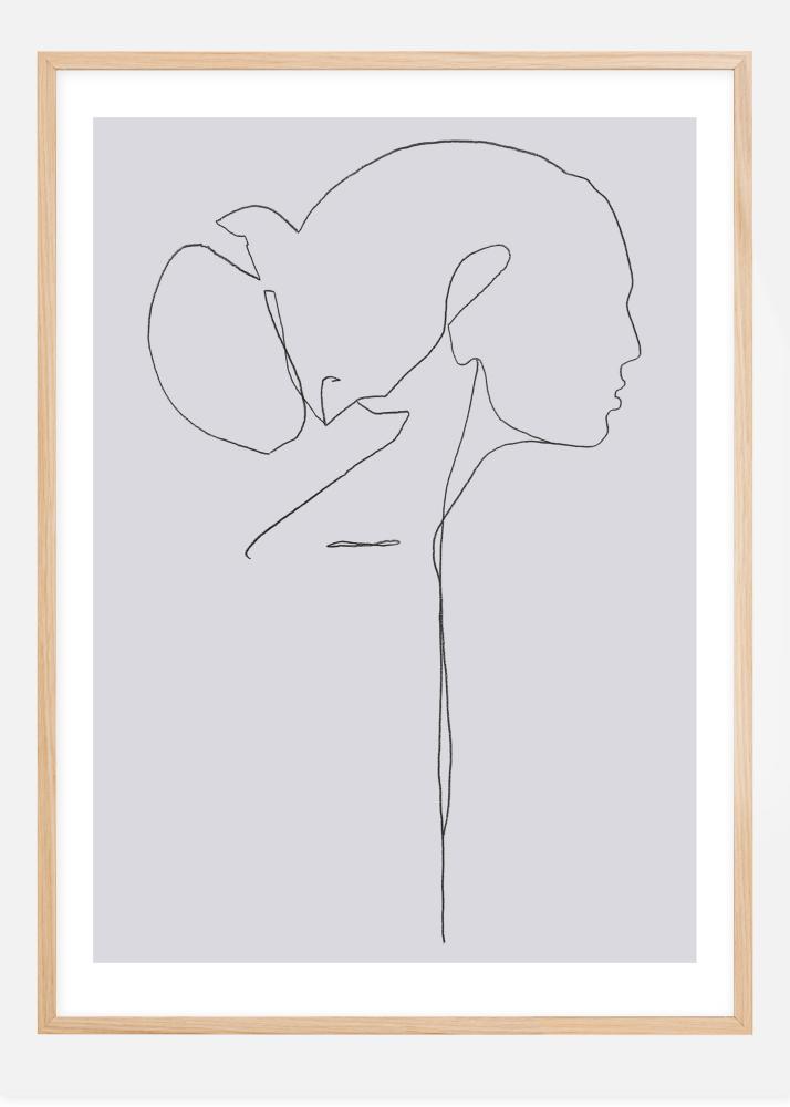 Beautiful and elegant line art of a woman with her hair up depicted in profile, created by Jörgen Hansson Art. A poster nice to combine with Jörgen Hansson's other Female Lines for a collage in the same theme.