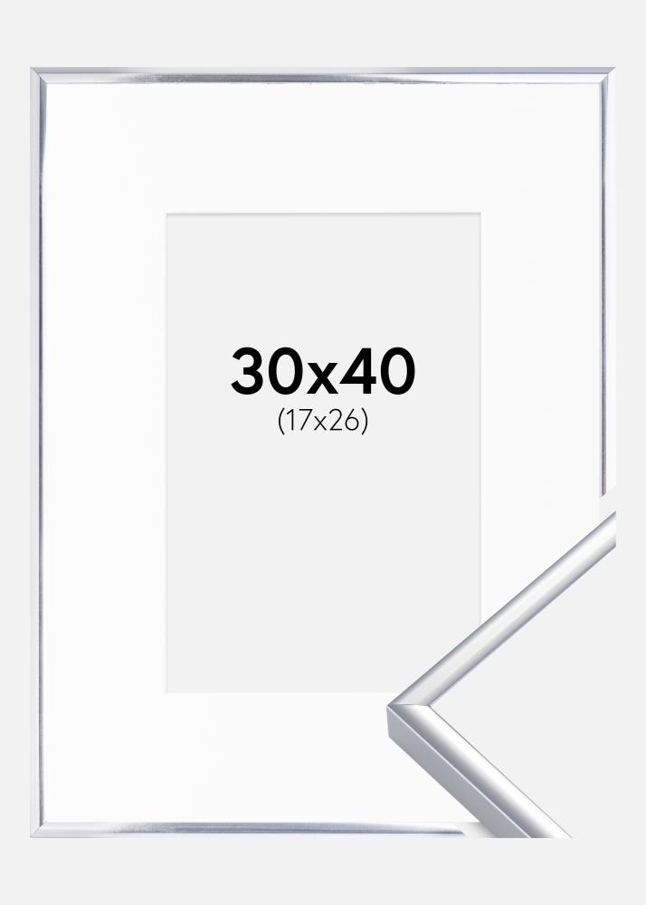 Frame Aluminium Shiny Silver 30x40 cm - Picture Mount White 18x27 cm