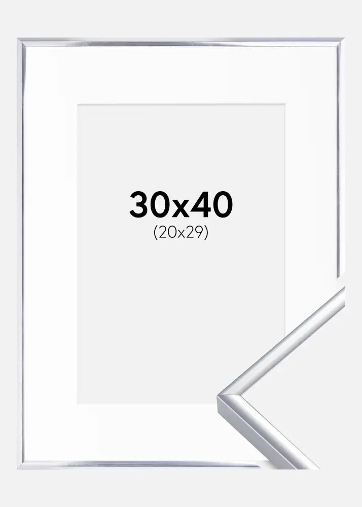 Frame Aluminium Shiny Silver 30x40 cm - Picture Mount White 21x30 cm