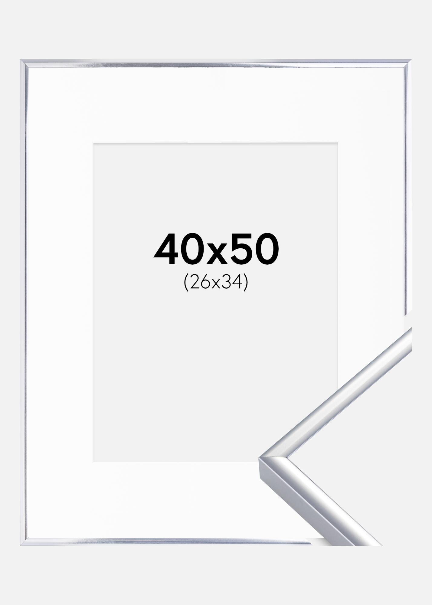 Frame Aluminium Shiny Silver 40x50 cm - Picture Mount White 27x35 cm