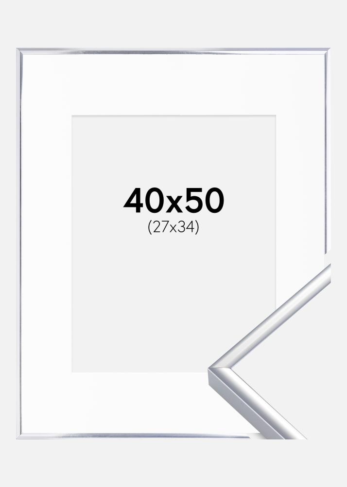 Frame Aluminium Shiny Silver 40x50 cm - Picture Mount White 28x35 cm