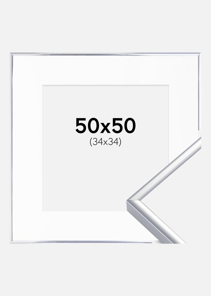 Frame Aluminium Shiny Silver 50x50 cm - Picture Mount White 35x35 cm