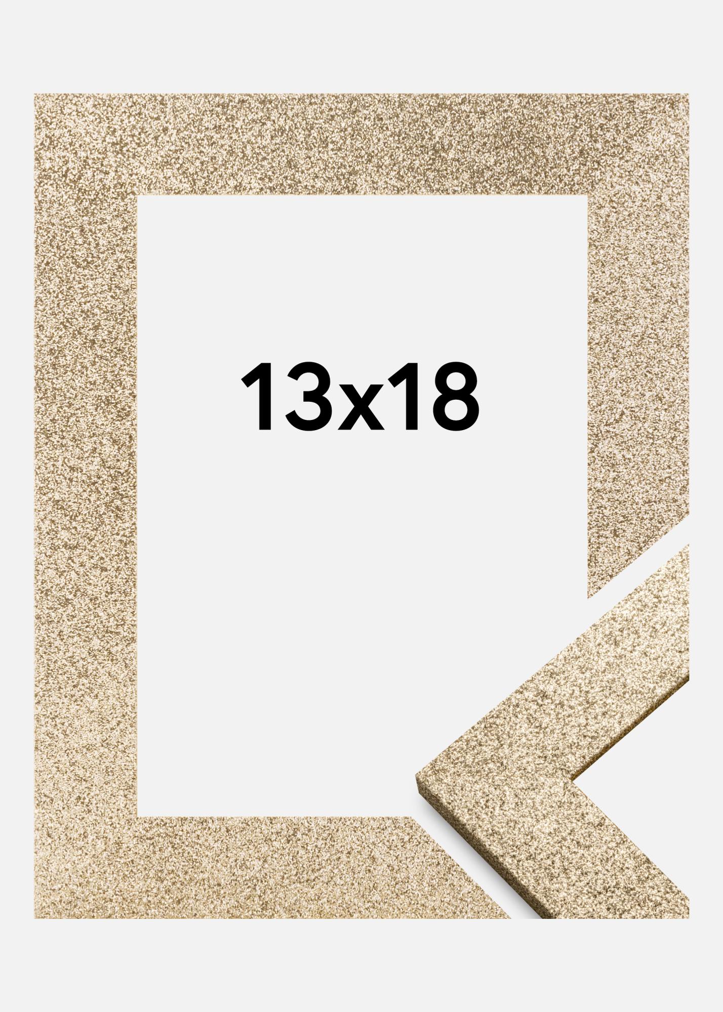 Give your photos a touch of luxury with this elegant 13x18 cm gold-colored photo frame. Its glittery surface captures the light and creates a shiny effect that will draw all eyes to it. This picture frame is not only a framing for your photos, it is also a decorative detail in itself.