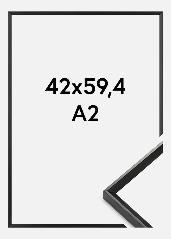 This is a black photo frame with a modern design and a stylistically simple and matte edge, just 10 mm wide. Furthermore, this picture frame has a 45° edge that slopes inwards towards the image, framing the picture fashionably and elegantly. This striking affect is heightened by the edge's 18 mm depth, which also gives the picture frame a very robust feeling.