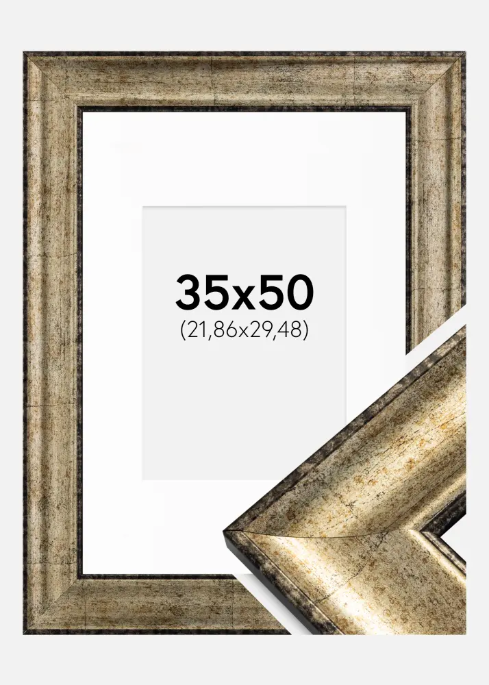 Frame Saltsjöbaden Antique Gold 35x50 cm - Picture Mount White 9x12 inches