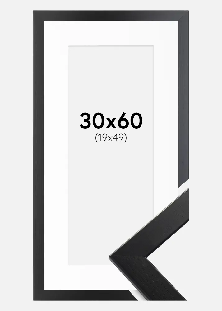 Frame Trendline Black 30x60 cm - Picture Mount White 20x50 cm