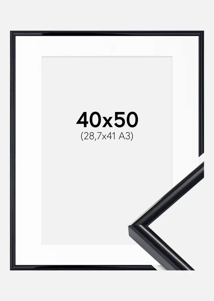 Frame Victoria Black 40x50 cm - Picture Mount White 29.7x42 cm (A3)