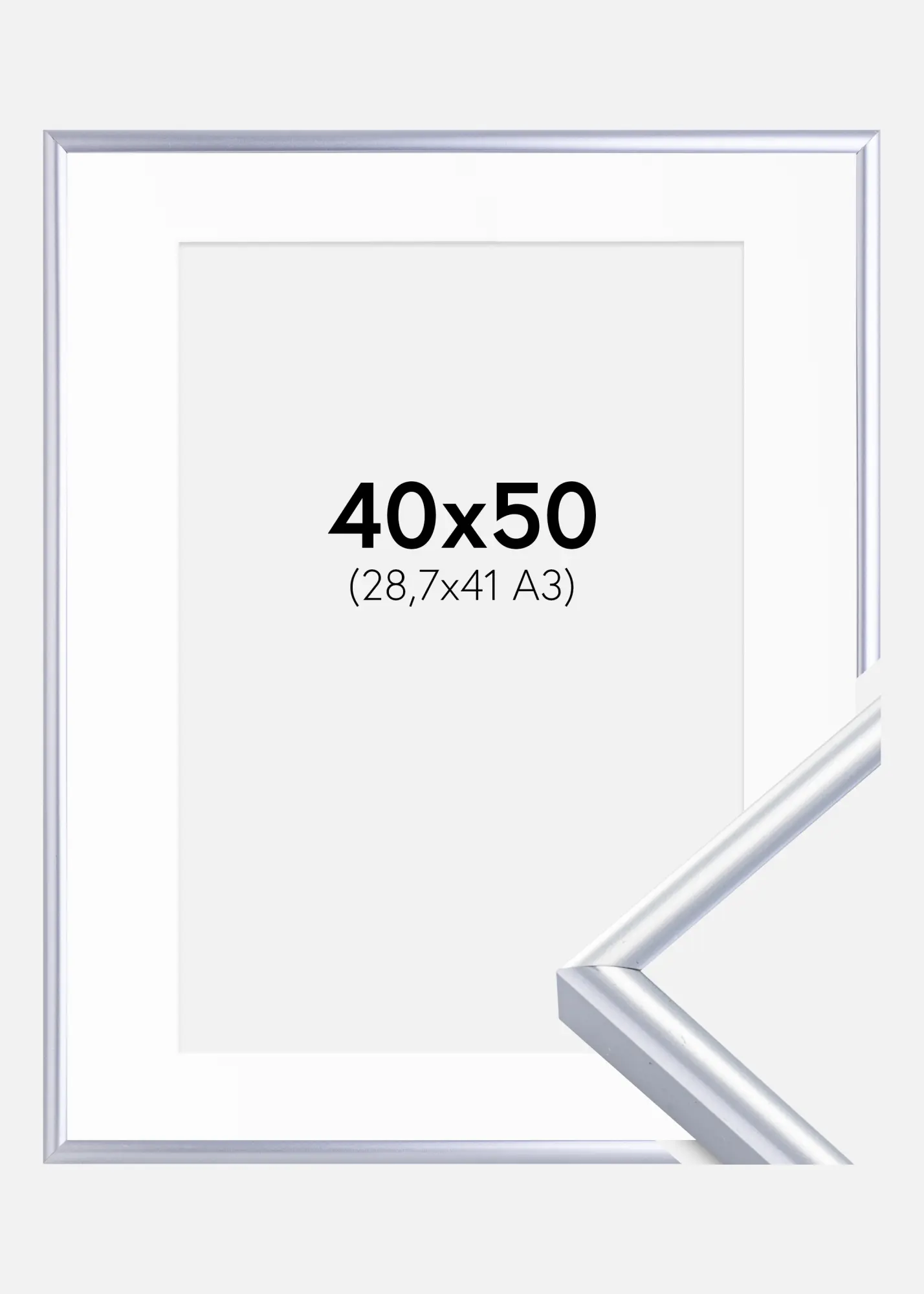 Frame Victoria Silver 40x50 cm - Picture Mount White 29.7x42 cm (A3)