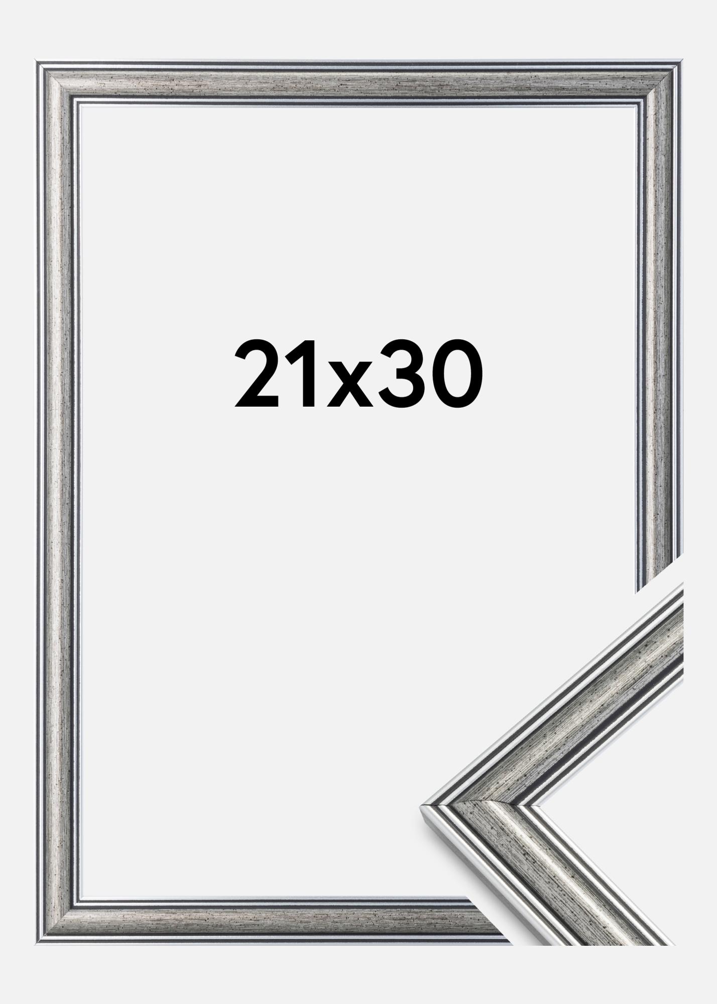 Frigg is a silver picture frame with black lines and black speckled elements. Works great when you're looking for a traditional, wide silver picture frame which goes together with lots of different kinds of picture and setting.