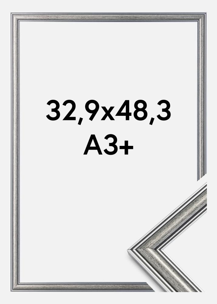 Frigg is a silver picture frame with black lines and black speckled elements. Works great when you're looking for a traditional, wide silver picture frame which goes together with lots of different kinds of picture and setting.