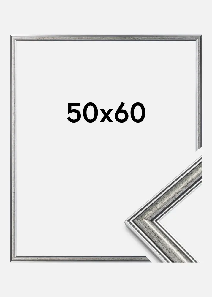 Frigg is a silver picture frame with black lines and black speckled elements. Works great when you're looking for a traditional, wide silver picture frame which goes together with lots of different kinds of picture and setting.