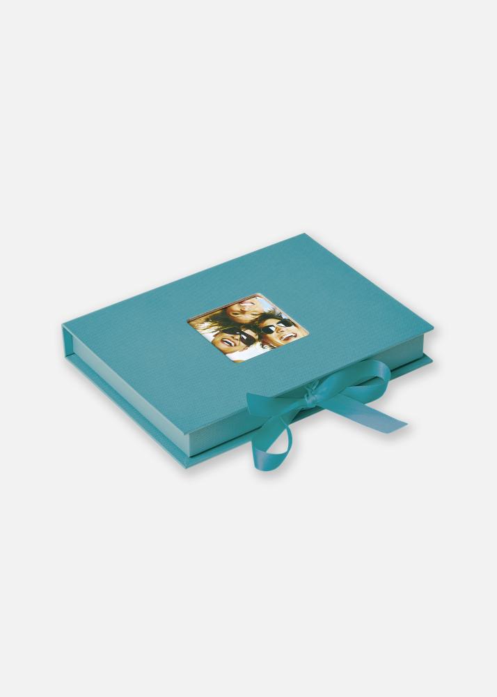Attractive photo box with a modern design in a beautiful green colour. Accommodates 70 pictures with the dimensions 13x18 cm. On the top of the box is a space for your own 6x6 cm picture, so you can easily personalise your photo box.