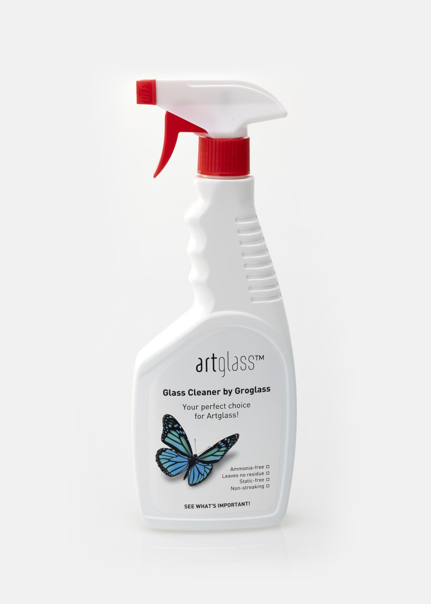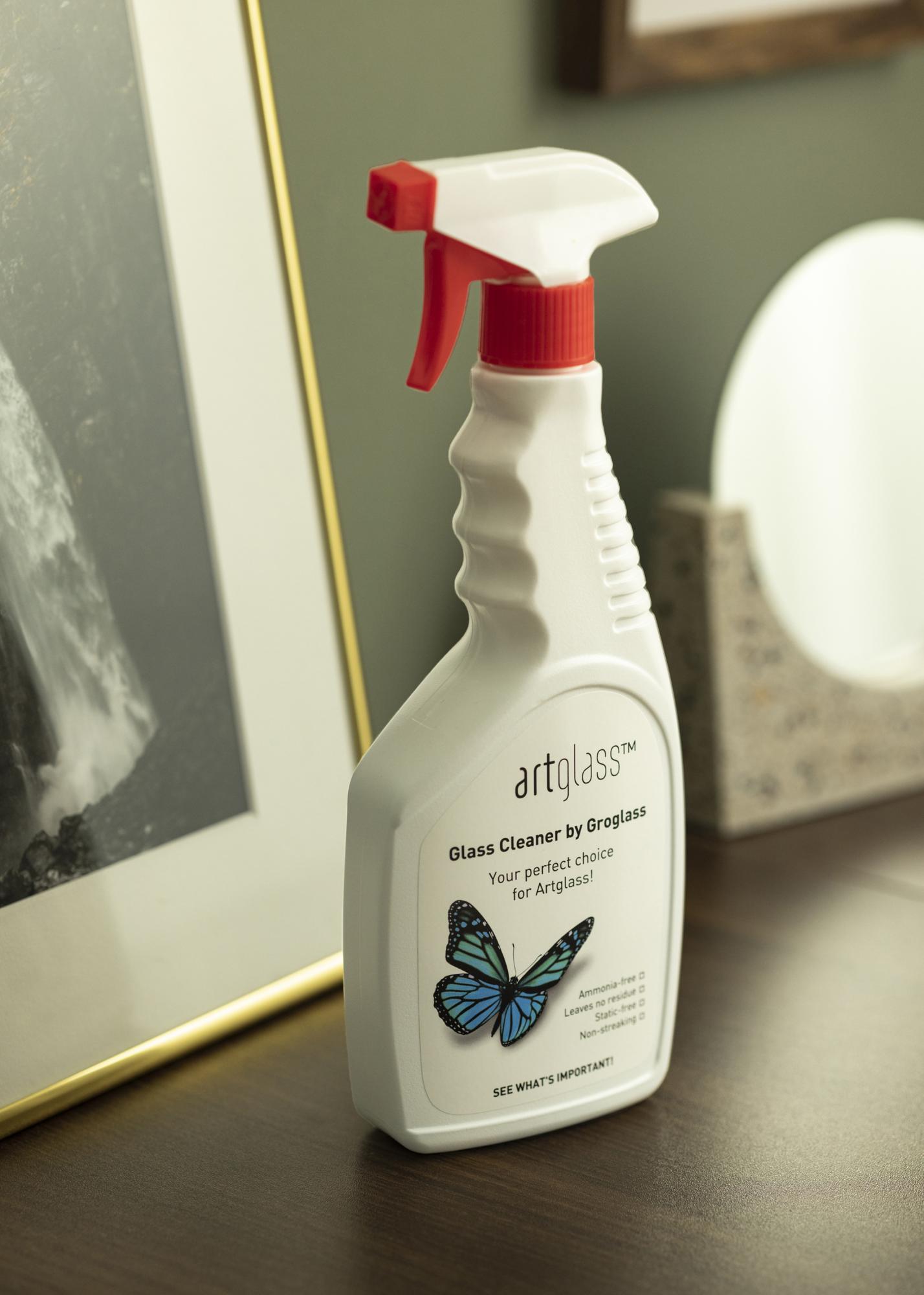 Clean your paintings and mirrors like a pro with Groglass Glass cleaner! This ammonia-free glass cleaner is used by professional framers, and easily and effectively removes dirt, stains or fingerprints from all types of glass. The glass cleaner is free of soap, does not foam up and it leaves no traces or streaks. This makes the glass cleaner particularly well-suited for cleaning reflection-free glass.