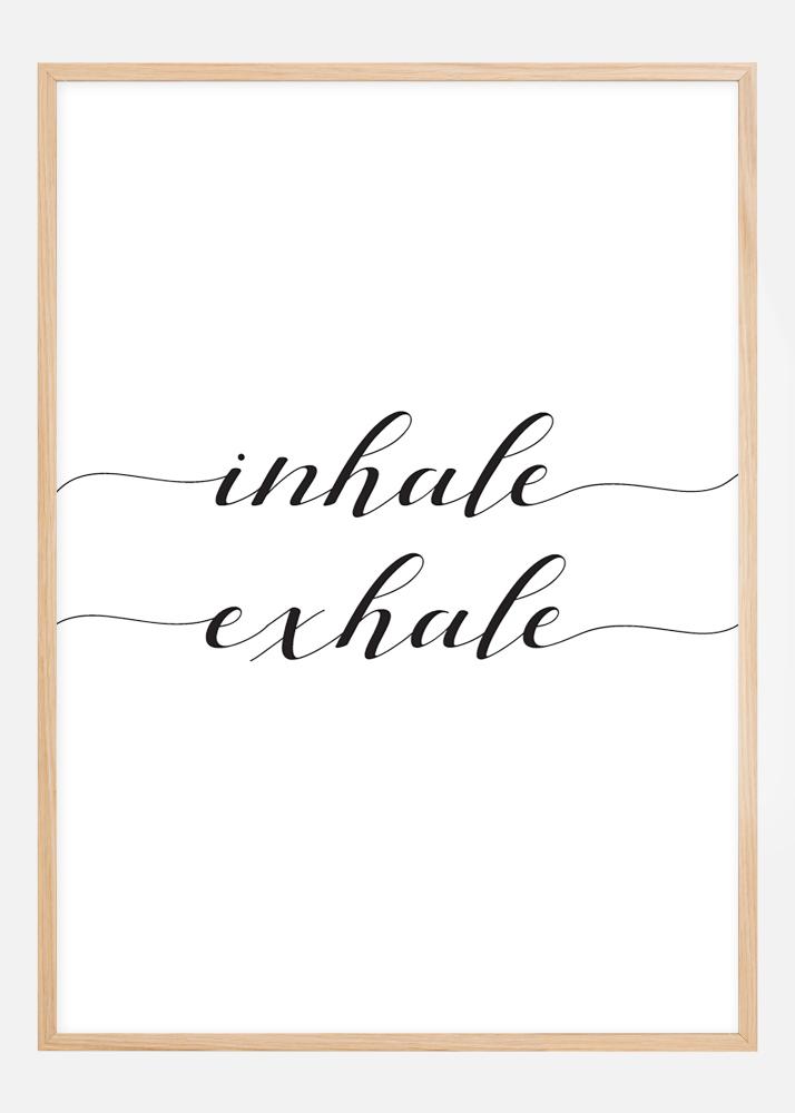 A motivational print with a simple message. Inhale-exhale. A positive message to transmit calmness and patience. Written in an elegant writing style, the black words are set on a white background. The perfect print to convey a positive message and stay calm whatever happens.