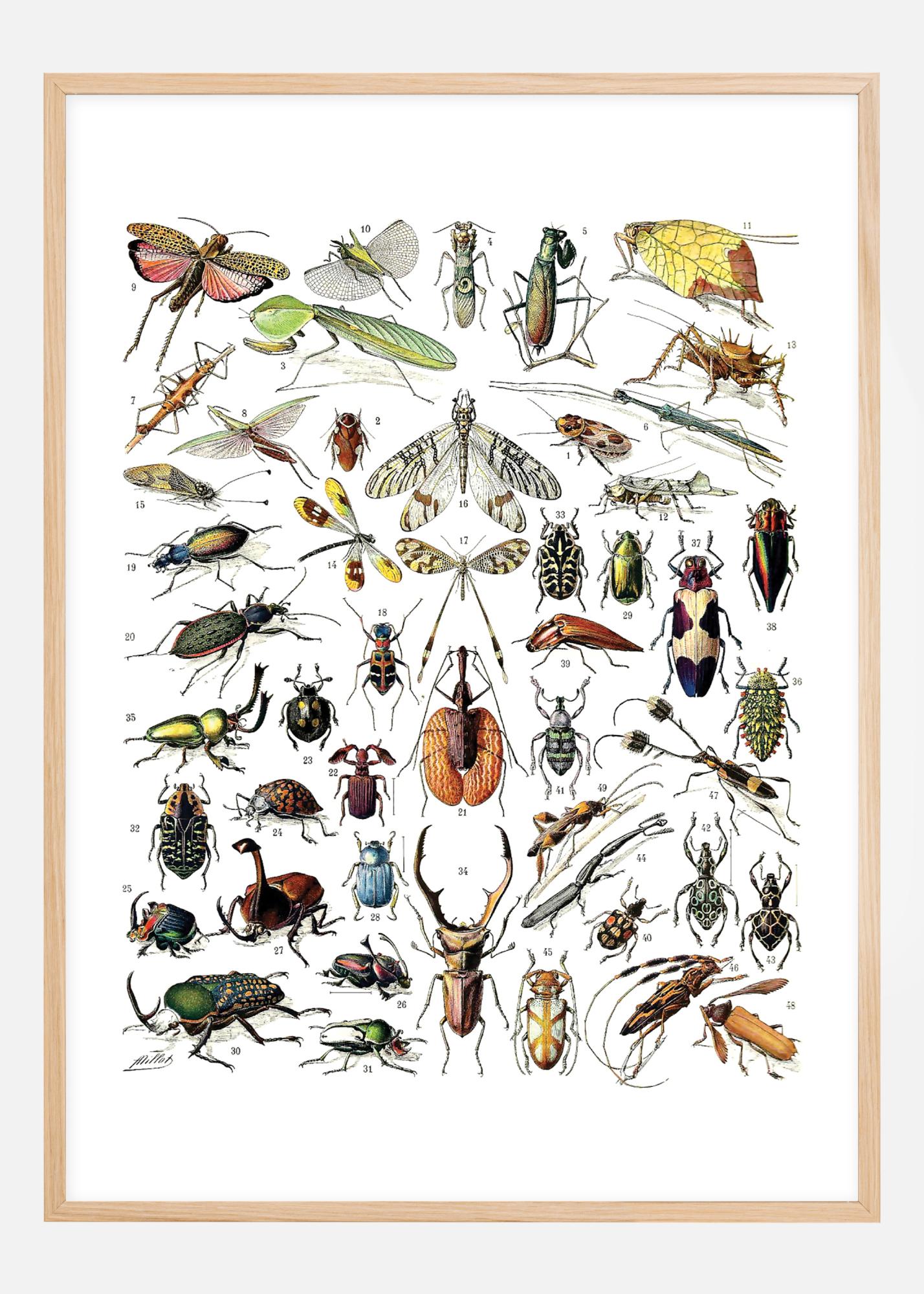 Bring nature into your home when you put up this beautiful educational poster! The motif is taken from an old book on entomology and it depicts a large group of colourful insects. Since the poster is available in several different sizes, you can easily find one that suits your purpose. Feel free to complement it with a stylish frame from our wide range!