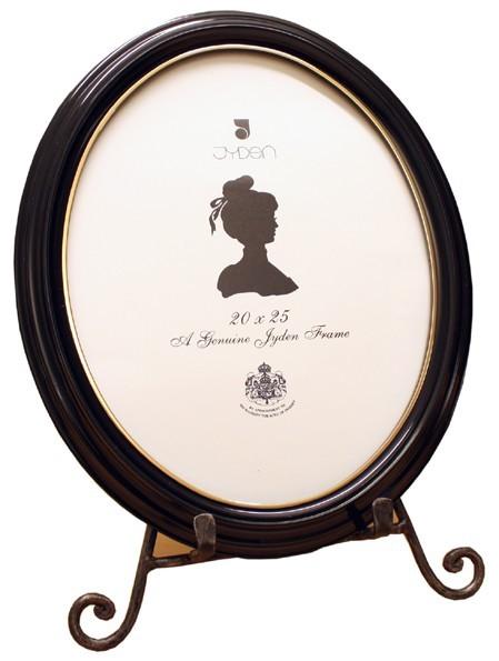 oval picture frame in classic style from Jyden that is perfect for portraits and similar. The picture frame has a gold-coloured edge next to the image, but is otherwise completely black.