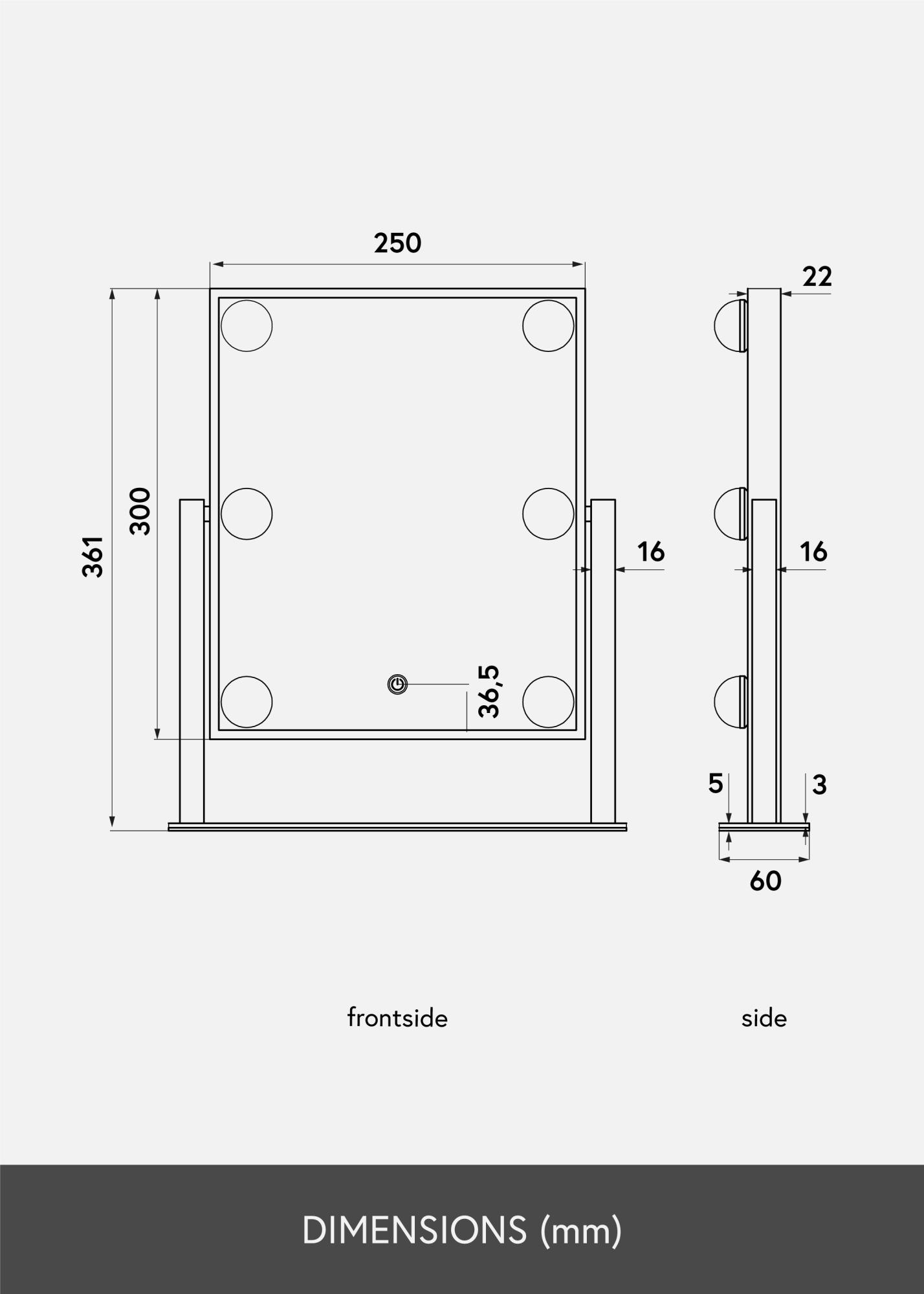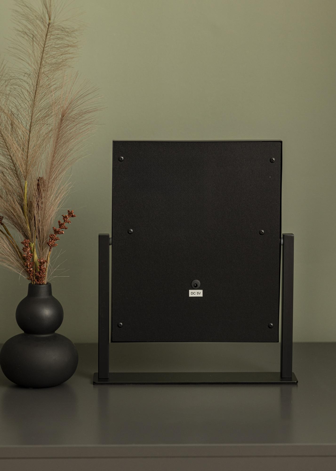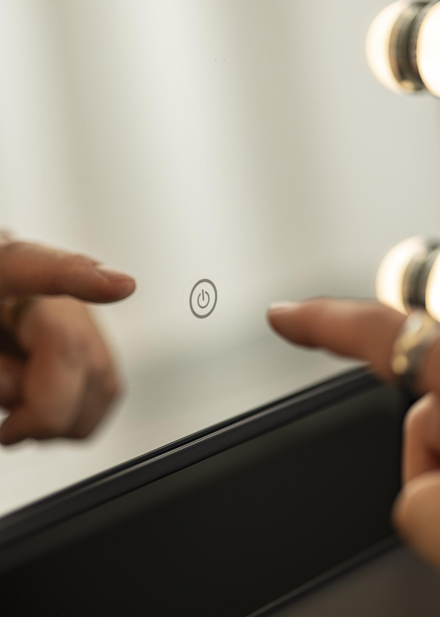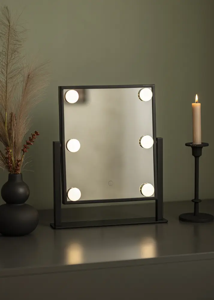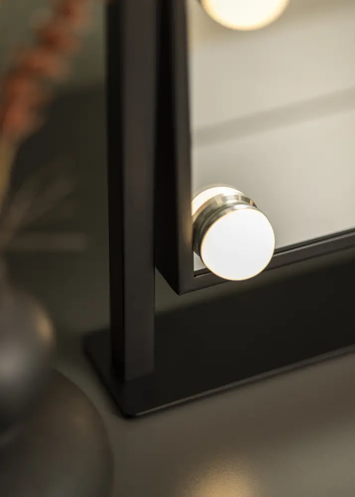This is a truly luxurious makeup mirror with six decorative and dimmable LED lightbulbs with a fashionable black shade. The lighting gives a warm, white 3000K light, and is activated by pushing the touch button. You can adjust the strength of the lightbulbs by holding the button for a couple of seconds. LED is a light source that uses less energy, has a longer lifespan, and gives a more natural and even light. This makeup mirror can be angled so that you can easily apply your makeup with precision. As well as these many functions, this makeup mirror has a real air of Hollywood, and is an elegant decorative detail in any home!