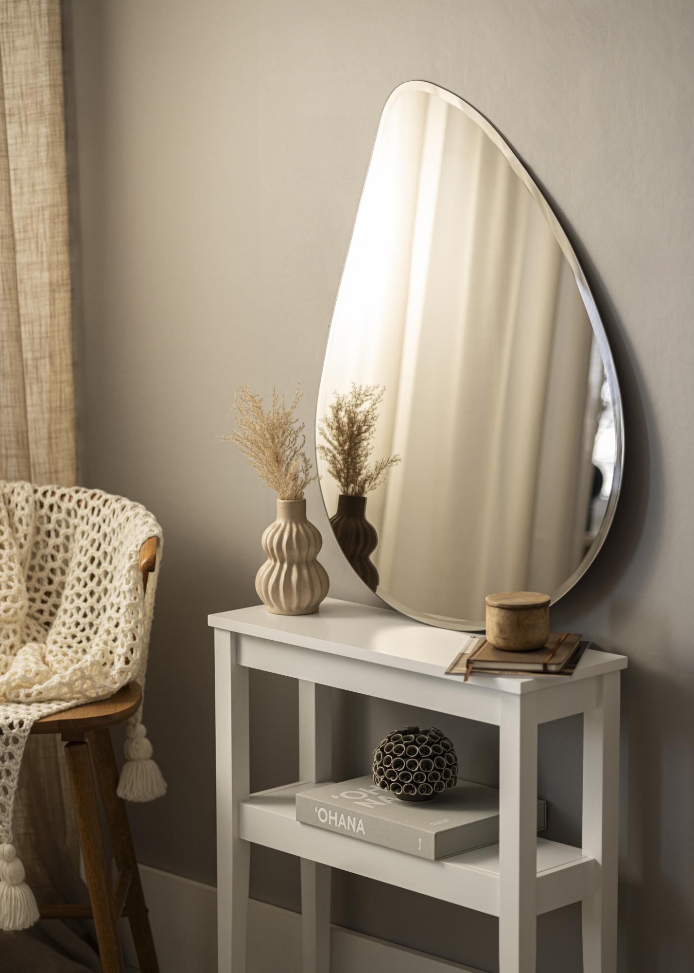 This is a fashionable, drop-shaped mirror with an even more fashionable, elegant bronze toned mirror glass. The toned mirror glass makes a big impact, and the beautiful bronze colour is easy to match with lots of different decor colour schemes. The mirror is very thing and has no frame. In combination with the luxurious faceted edge, this makes the mirror appear even more elegant and modern. This is a very decorative mirror, and is guaranteed to attract attention wherever it's put - whether in the living room, hall or bedroom.