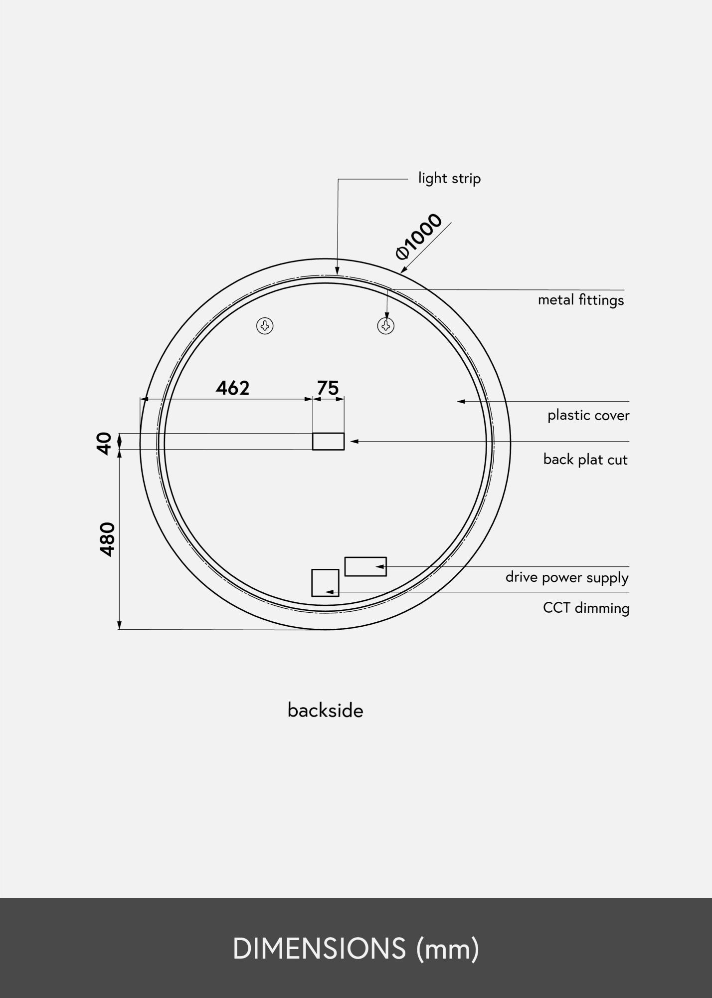The mirror is approved for bathroom use, but its timeless and elegant design looks great on any of the home’s other walls! The mirror has a 100 cm diameter, is just 3 cm deep, and comes with wall fixings. This mirror is intended for fixed installation and for connecting to a light switch. For the mirror to function correctly, it must be connected to a standard switch, not a dimmer switch.