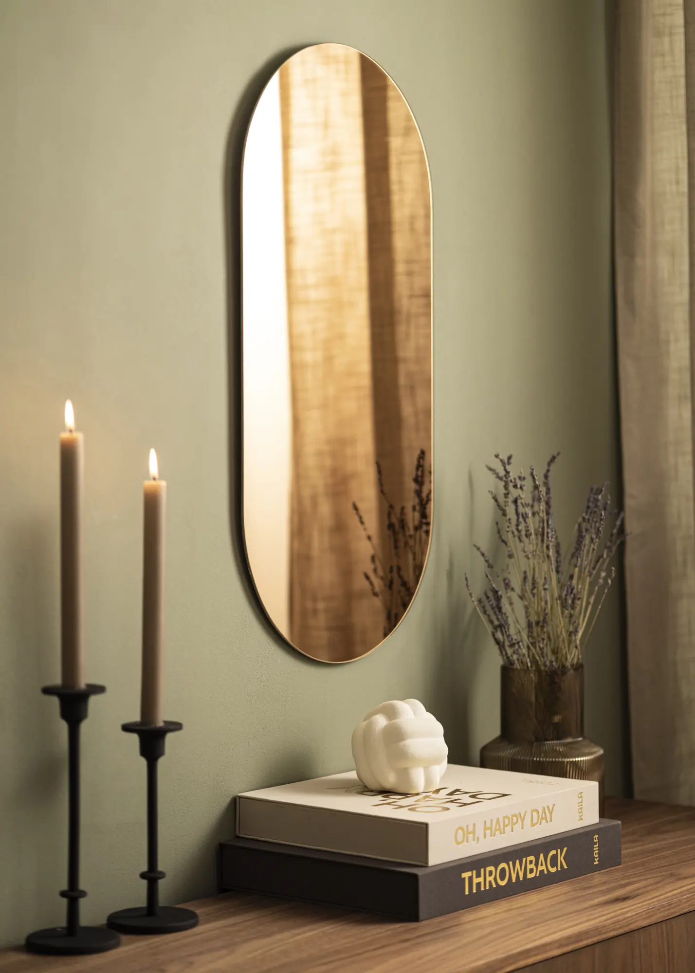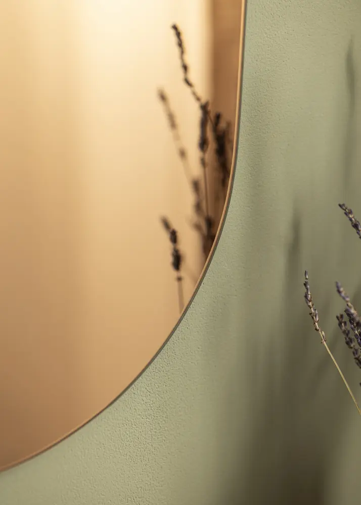 This mirror is really something out of the ordinary! An oval mirror that is just 4 mm thick. Designed for elegance and finesse. The elegant and stylish feeling is enhanced by the frameless mirror design. The mirror features rose gold-tinted mirror glass, which adds a super trendy element to your interior design style.