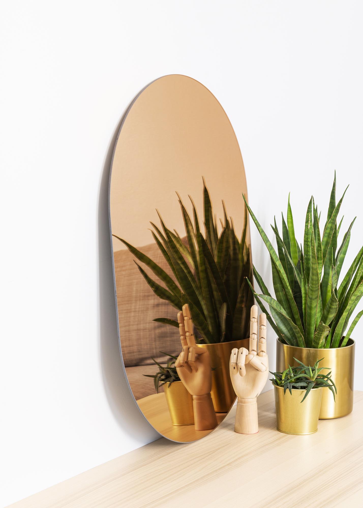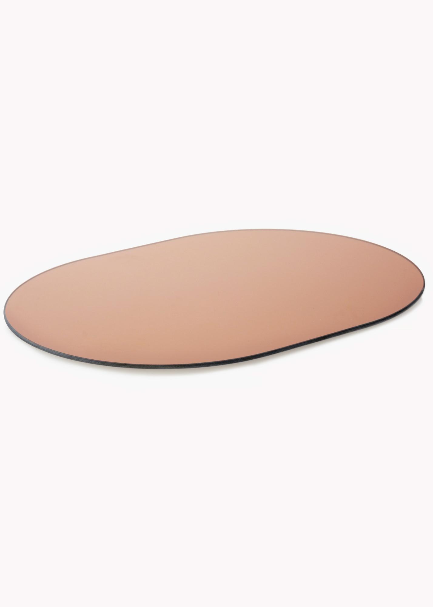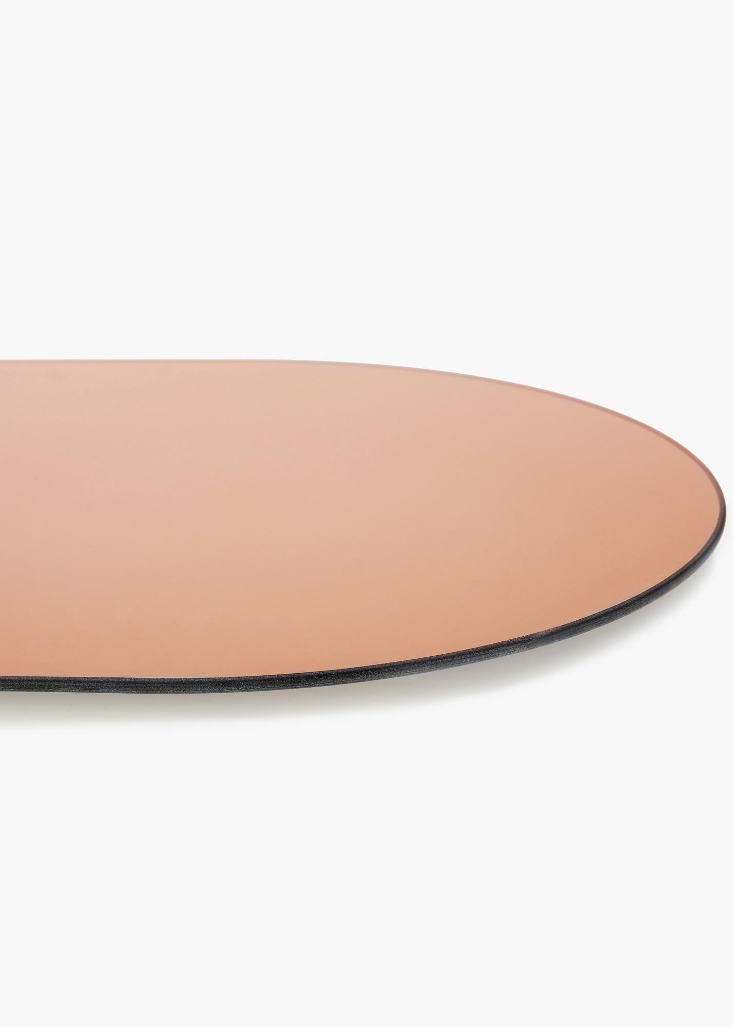 This oval mirror is very thin and frameless, which creates a trendy and elegant impression. The trendy feeling is enhanced by the mirror glass, which is rose gold tinted in a stylish shade. This detail makes the mirror an eye-catching piece, without compromising on elegance.