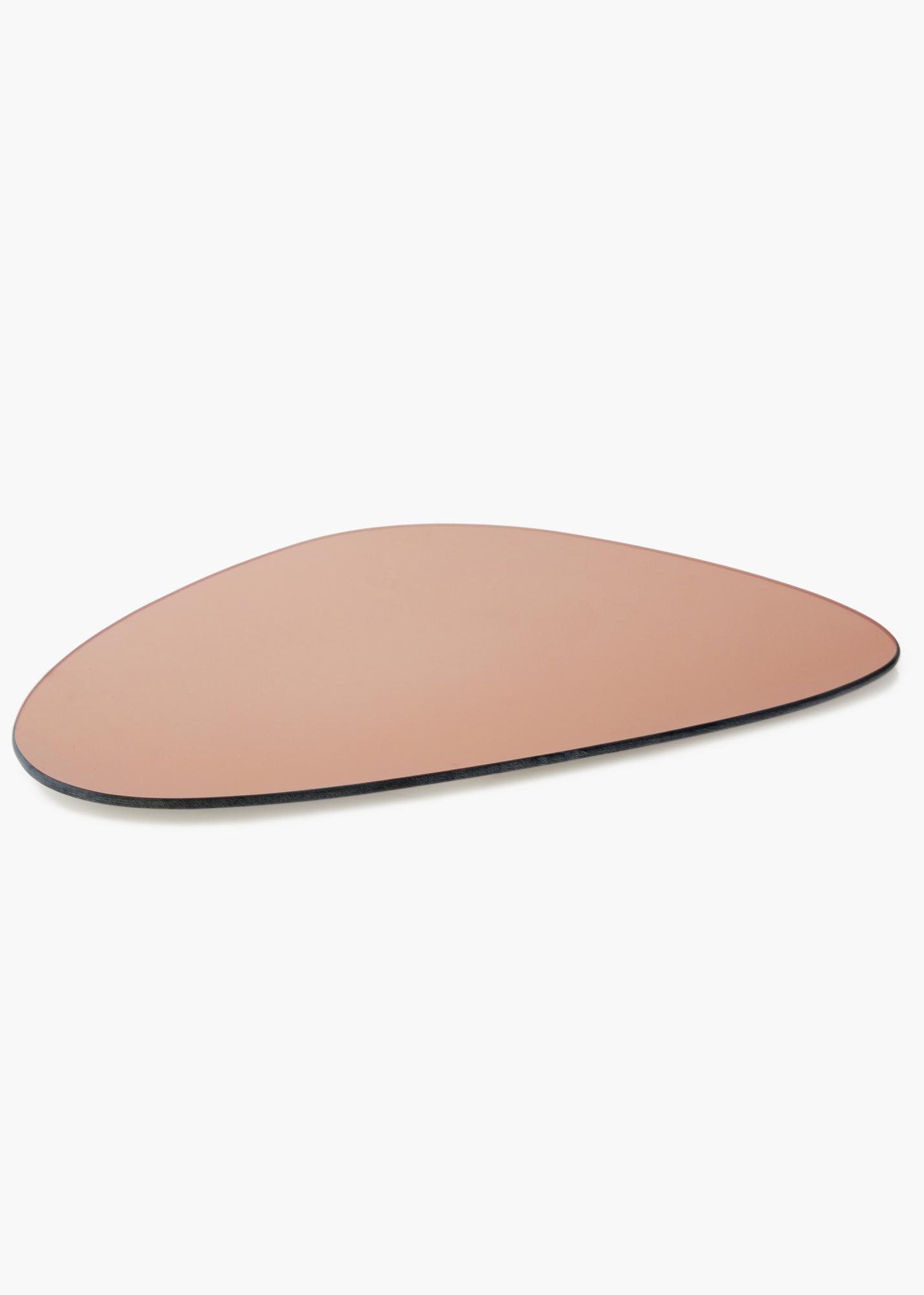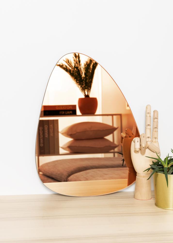 An asymmetrical mirror creates a trendy impression in your home! This decorative wall mirror is very thin, which adds a touch of elegance to this modern and unusually shaped mirror. The mirror glass is tinted in an striking and warm shade of rose gold which adds to the trendy look.
