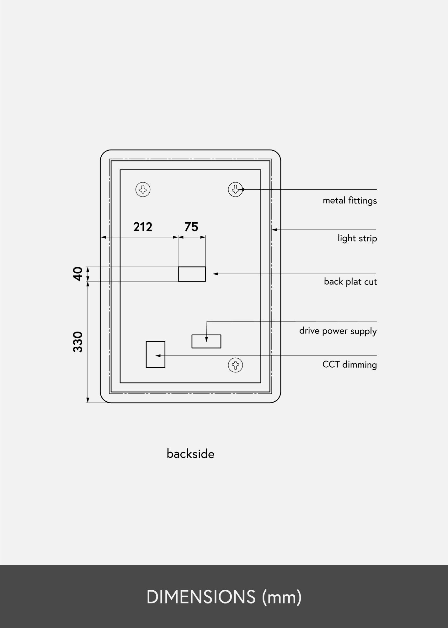 This elegant bathroom mirror has a depth of just 3 cm, and measures 50x70 cm. The mirror has wall fixings and can be mounted in both landscape and portrait orientations. The dimmable LED lighting and the soft edges mean that the mirror gives a warm and soft feeling to whichever room it’s placed in. It is approved for bathroom use.For the mirror to function correctly, it must be connected to a standard switch, not a dimmer switch.