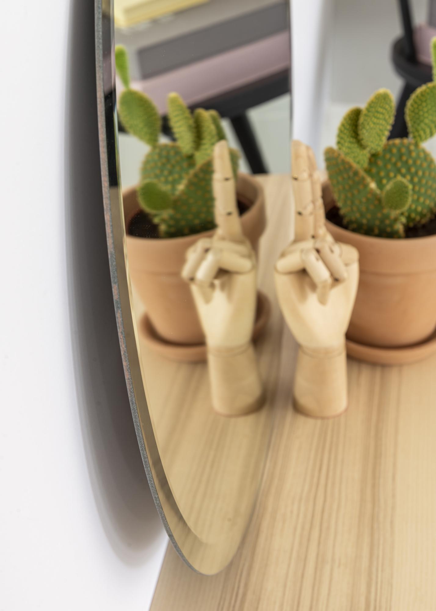 KAILA Round Mirror Deluxe comes in a range of sizes and this example has a diameter of 90 cm. The perfect size for a bathroom mirror, hall mirror or to add a functional design detail to your living room or bedroom.