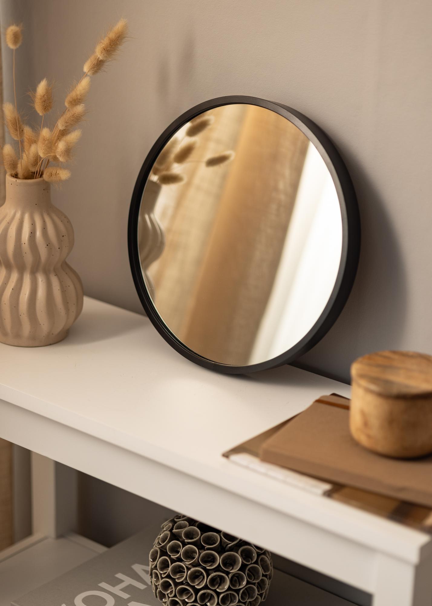 KAILA Round Mirror Edge Black is a round mirror with a thin, stylish metal frame in matte black that gives it a trendy, industrial appearance. The frame has a depth of between 30 and 40 mm depending on the size you choose, which means that it stands slightly off the wall, giving it a cool 3D effect. The depth of the frame also makes the mirror feel solid without affecting its minimalist appearance. A perfect round mirror to place in any room to which you want to bring function and stylish Swedish design!