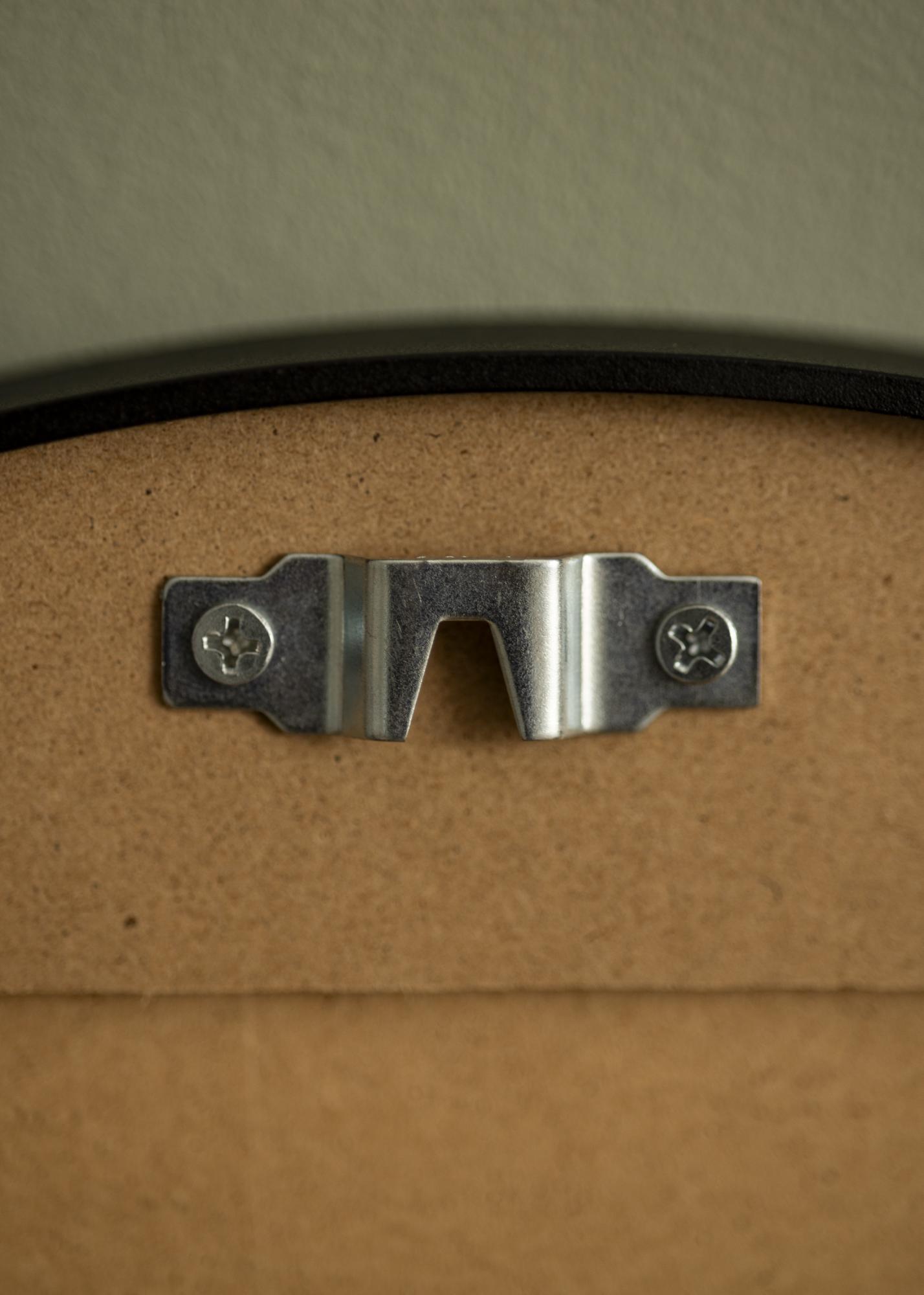 The mirror is available in several sizes, and this model has a diameter of 40 cm. On the back of the mirror are two pre-assembled wall mounts for easy and stable hanging on your wall. Matching screws and wall plugs are included.