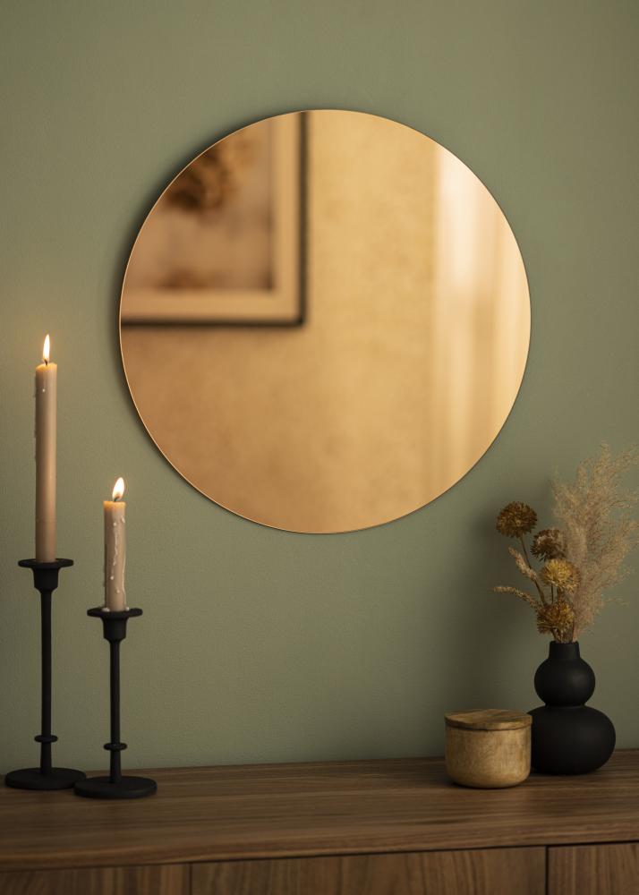 This round mirror is something special! This elegant and stylish mirror is designed in a soft shape and is frameless and very thin. The mirror features rose gold-tinted mirror glass which looks trendy in your home.