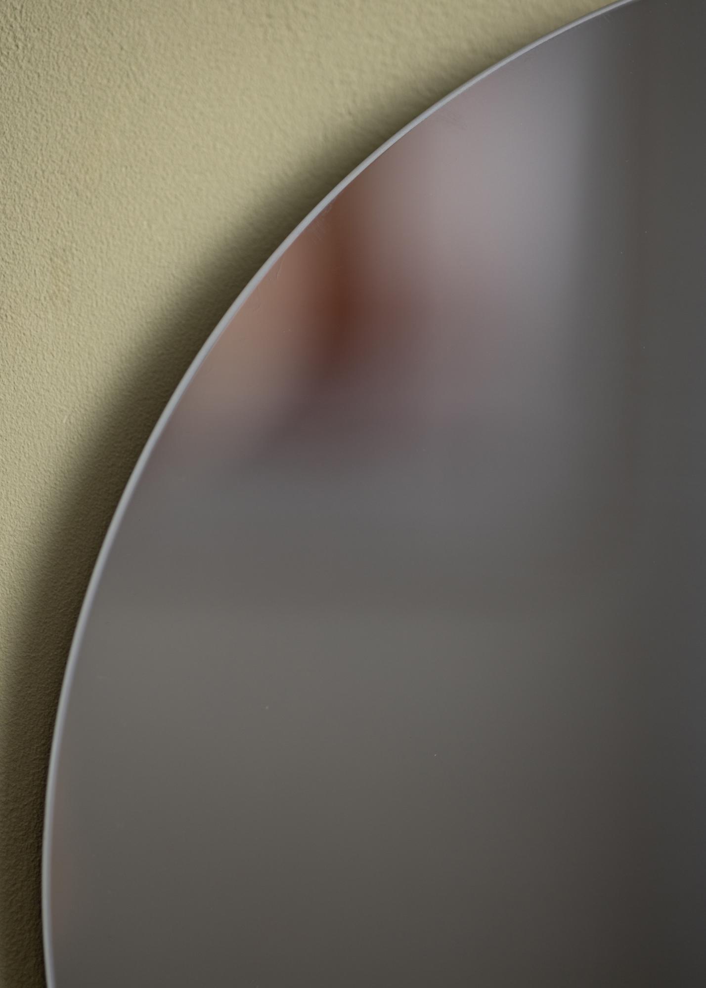 A round mirror with a stylish grey-toned mirror glass that adds a trendy interior detail in your home! This mirror is very thin and is made in minimalist design without a frame. This creates an elegant and super modern look.